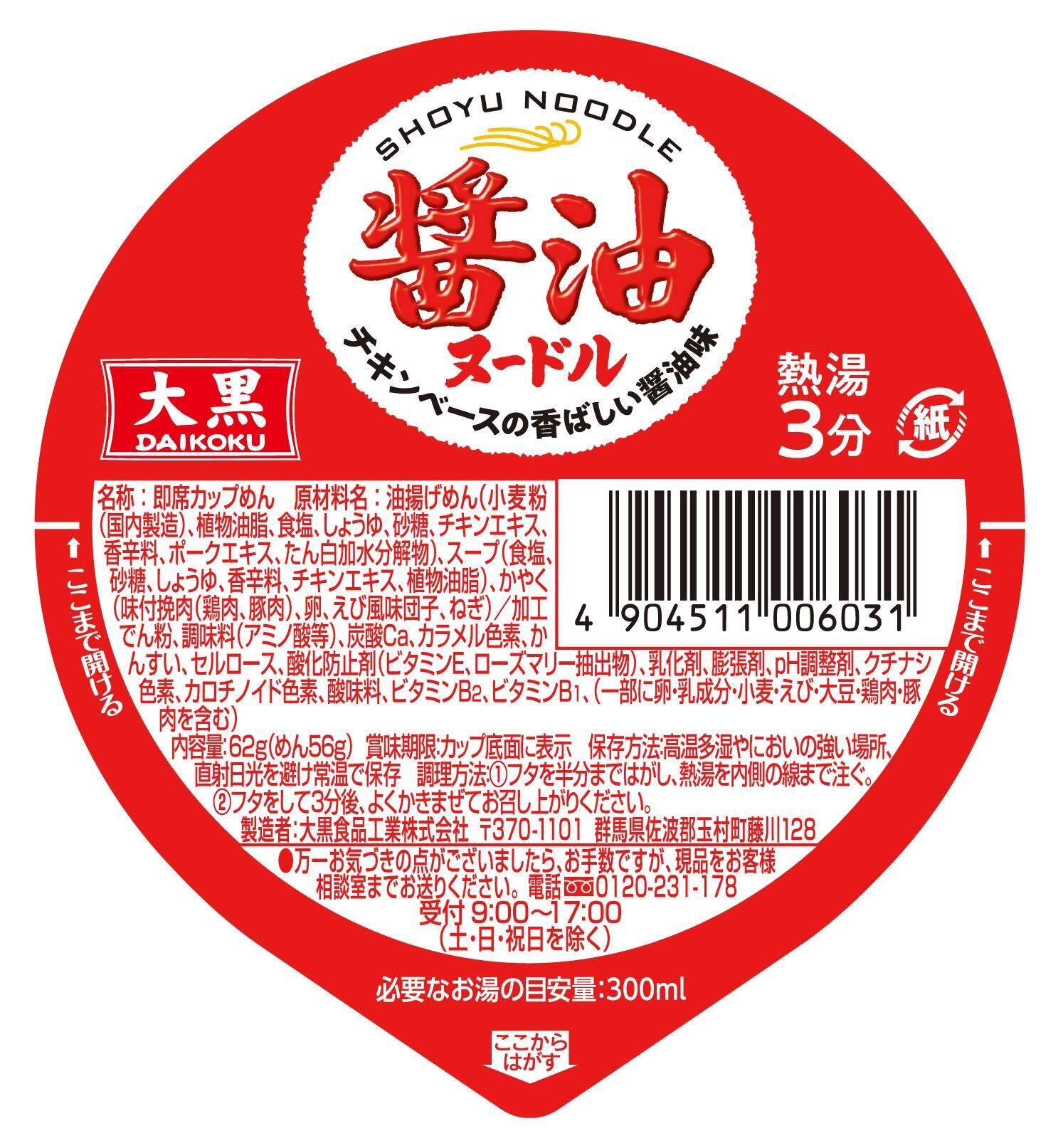 「大黒 醤油ヌードル」は、香り高い醤油スープが特徴のカップ麺です!62gのカップが12個セットになっており、いつでも簡単に本格的な醤油ラーメンを楽しむことができます。