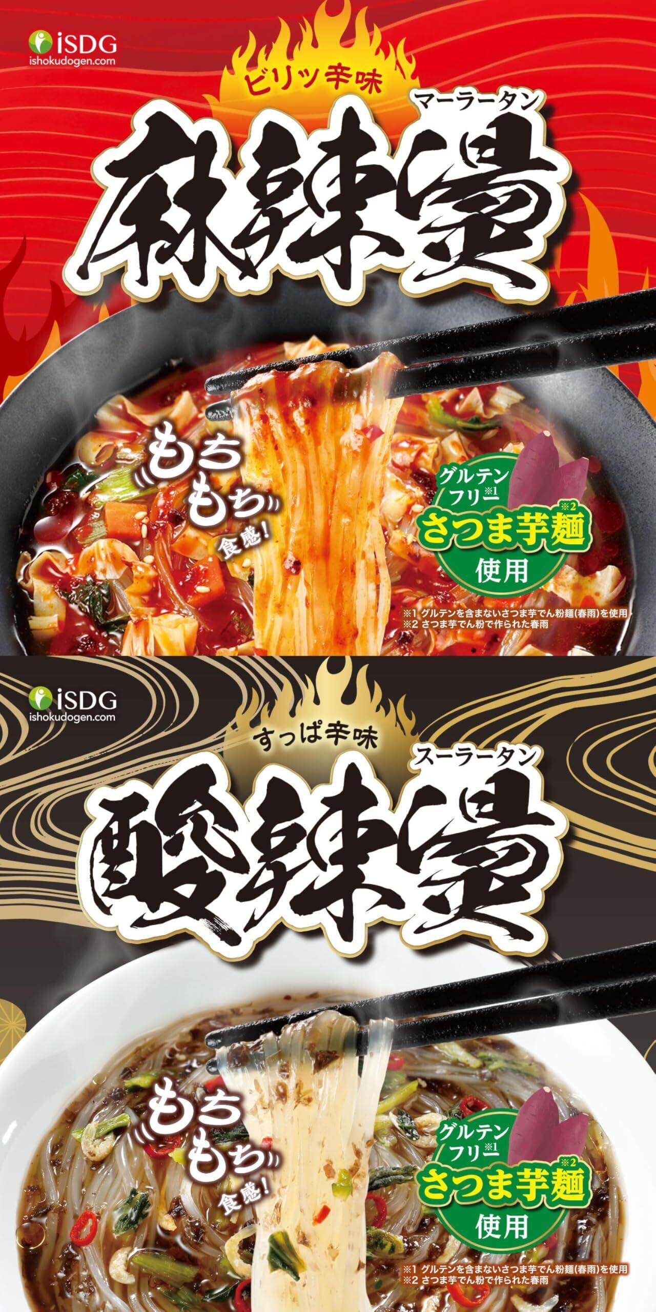 [医食同源ドットコム] iSDG 麻辣湯 (マーラータン) 88g ×3食 + 酸辣湯 (スーラータン) 76g ×3食 『2025優秀味覚賞』『ジャバンフード・セレクション受賞』グルテンフリー さつま芋麺使用 低カロリー おいしいグルテンフリー麺 モチモチ食感 春雨 豆乳 野菜 即席春雨 カップ麺