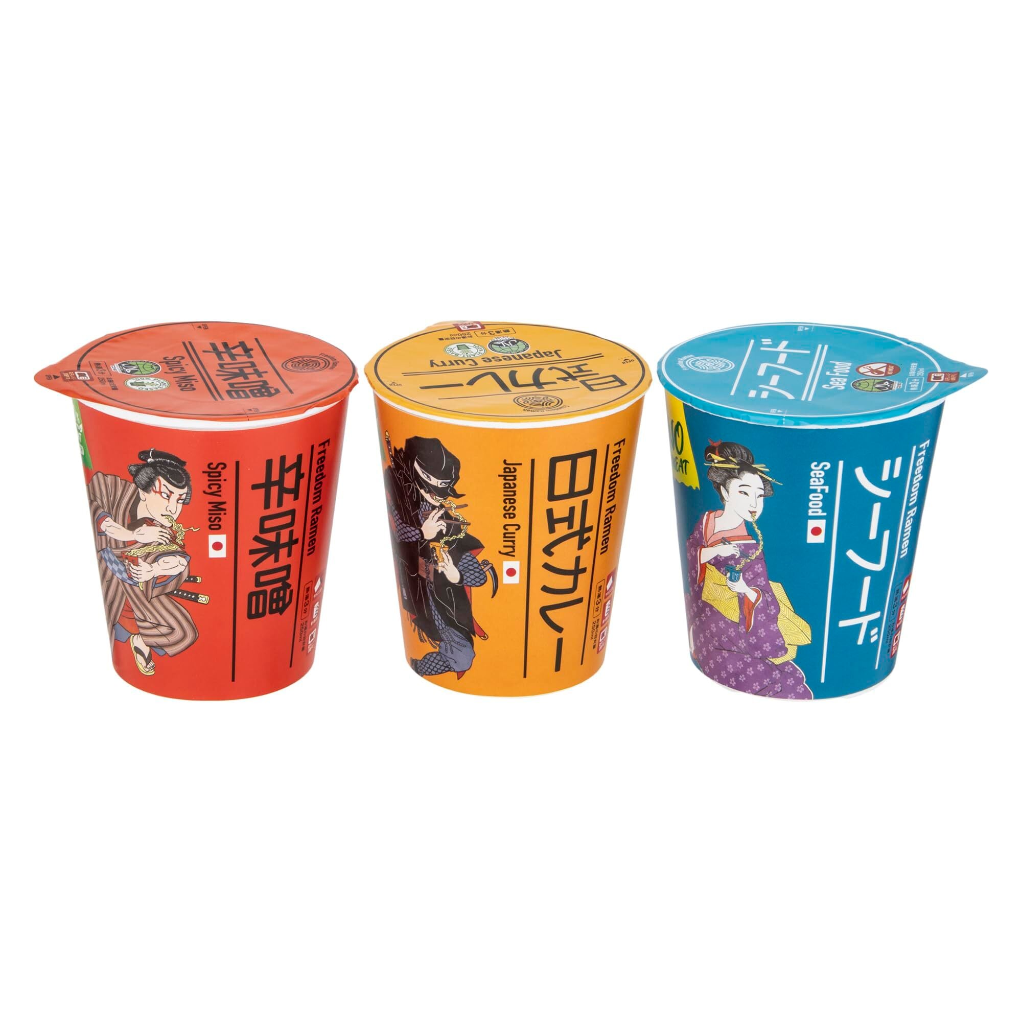 TANAKA VALUE-PLUS TRADING Freedom Ramen ハラルカップめん 3種類【辛味噌・カレー・シーフード】×1セット 3個