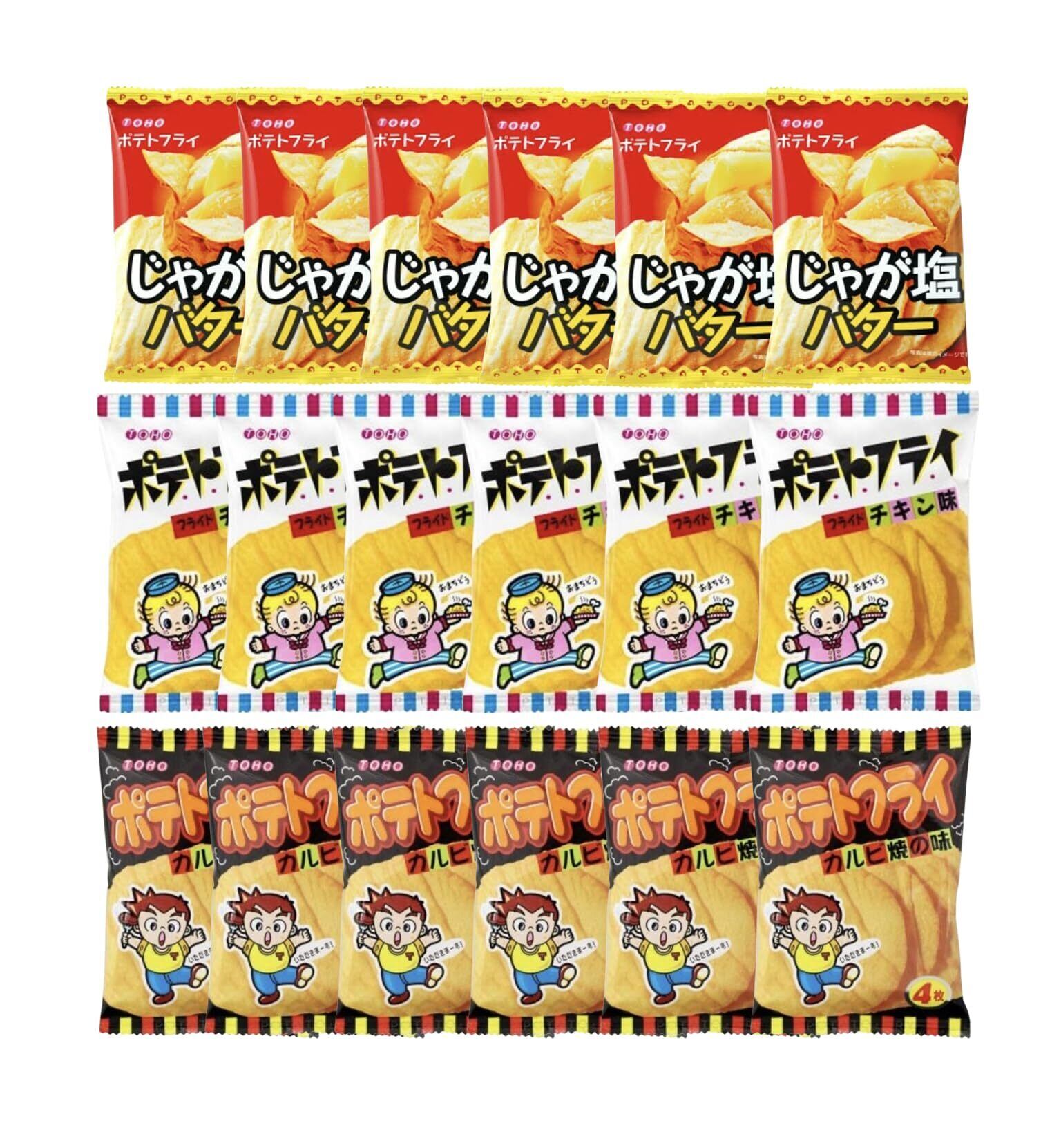 東豊製菓 ポテトフライ アソート 18袋セット【じゃが塩バター・カルビ焼・フライドチキン各種6袋】駄菓子 詰め合わせ 個包装 おやつ 大人買い 子供会 景品 イベント用