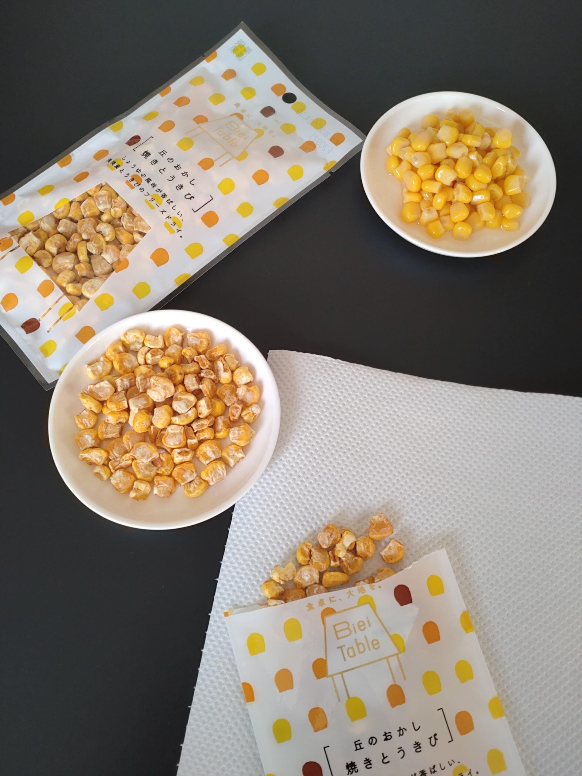 北海道美瑛町の生産者が大切に育てたとうきびは、北海道の美瑛の風土や大地の恵み を感じさせる味わいで自然の美味しさです。自然の甘さと香りが口いっぱいに広がり ます。焼きとうきびはフリーズドライ製品の中でも需要のある商品。美瑛産のスイー トコーンを使用し、さっくりとした食感と香ばしいしょうゆ味に仕上げました。一度 食べたらクセになるおいしさで、おやつにも、料理にもおすすめです。