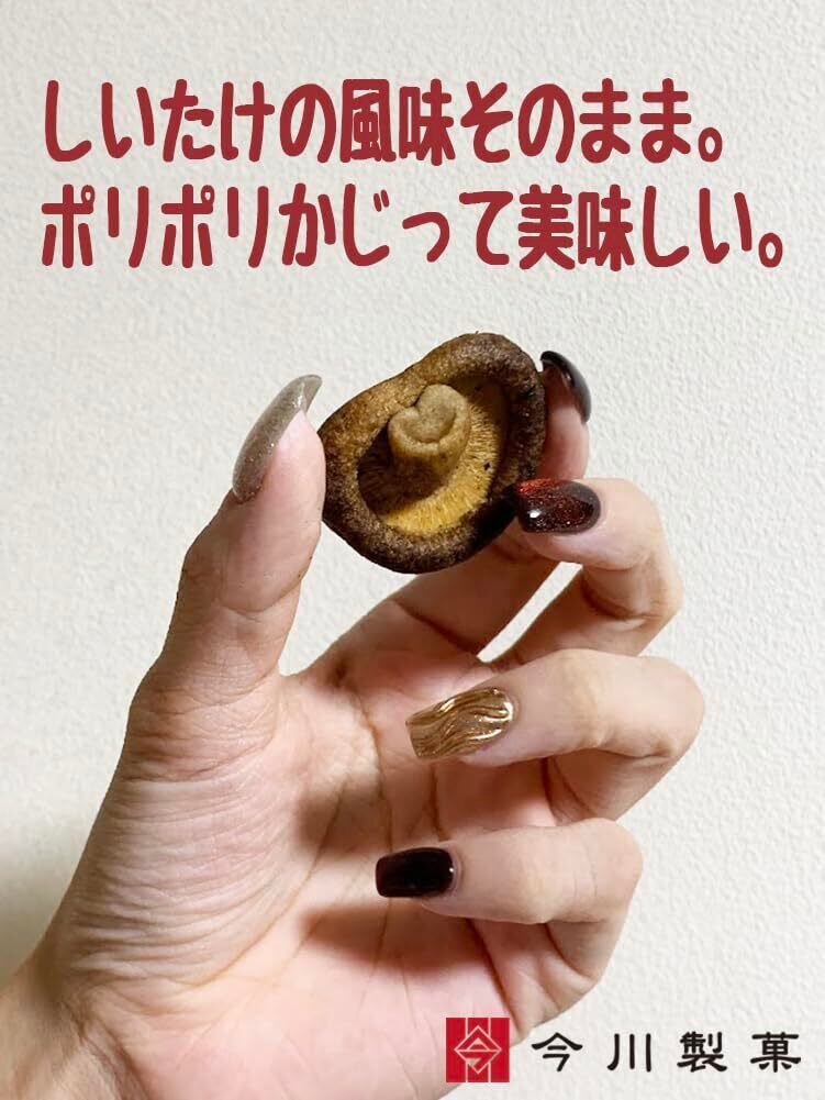 「今川製菓 しいたけチップ」をぜひお試しください!シイタケの深い味わいとサクサクの食感を楽しみながら、特別なおやつタイムをお過ごしいただけます。