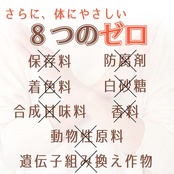 保存料、防腐剤、着色料、遺伝子組み換え作物、動物性原料を使用しておりません