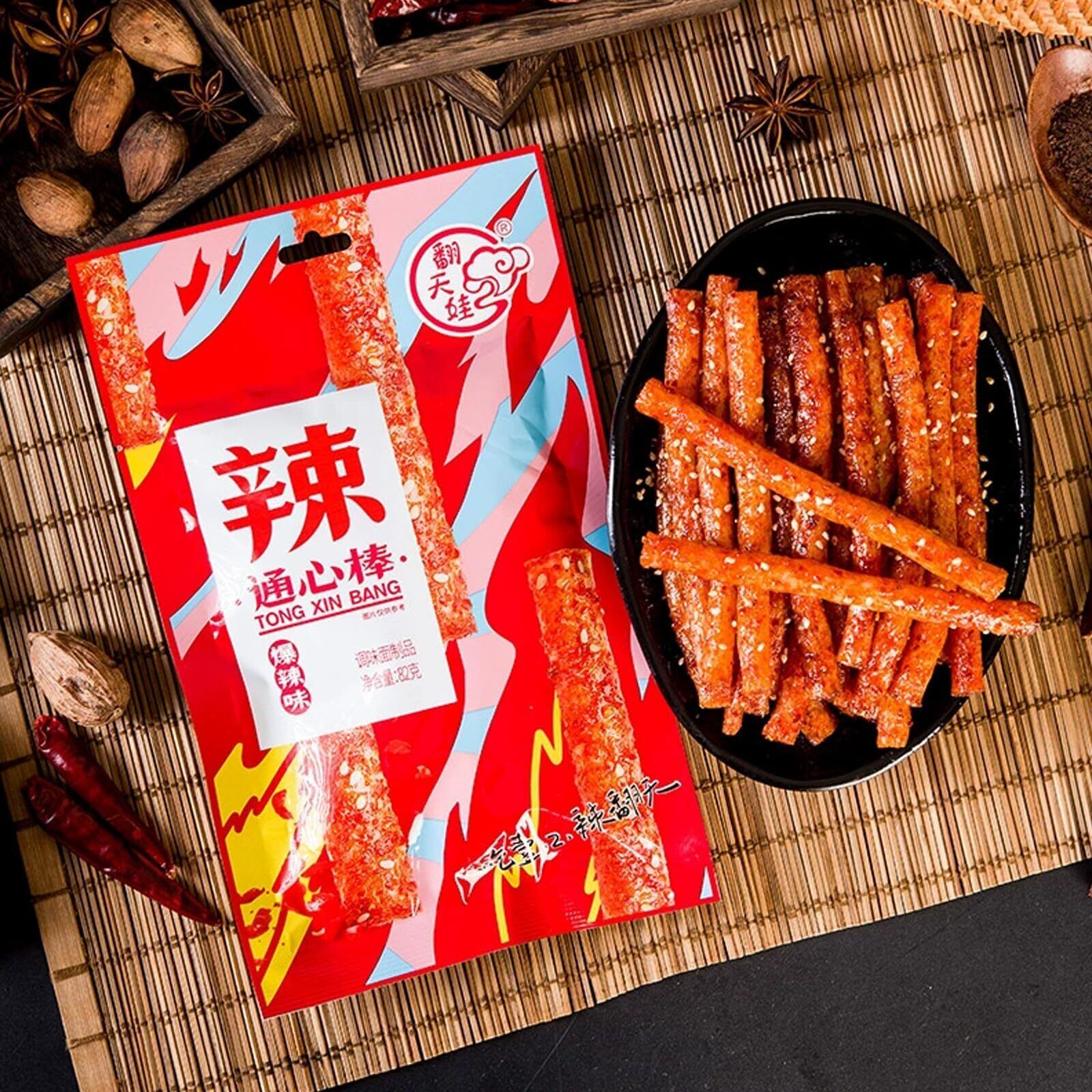 YAYAMIYA ラーティアオ 辣条 中国 お菓子 翻天娃辣条 [大容量パッケージ 82g] 麻辣休闲食品小吃 素食手撕面筋 爆辣通心棒 元気棒 ベースフード ご飯のお供 おつまみ 香辣薯条 湖南特产 中華食材 怀旧零食 麻辣小零食 辣條 ベジタリアンスパイシースナックおつまみ 辛口 おつまみ おやつ 爆辣片 辣味零食