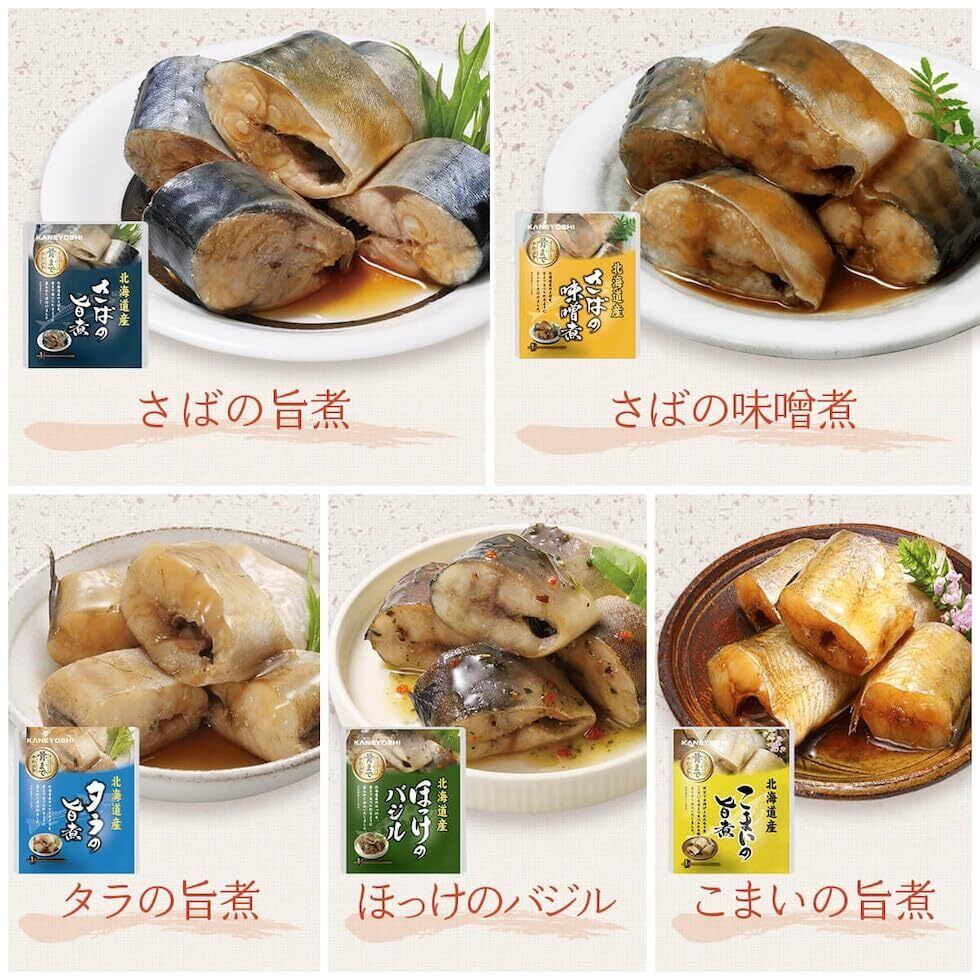 北海道産 の新鮮な 魚介 イワシ サバ サンマ コマイ ホッケ タラ を 骨まで食べられる ほど柔らかくじっくりと煮込んだ 兼由 魚のおかず 詰め合わせ セット ええもん広場 オリジナル 国産 乾燥野菜 付き