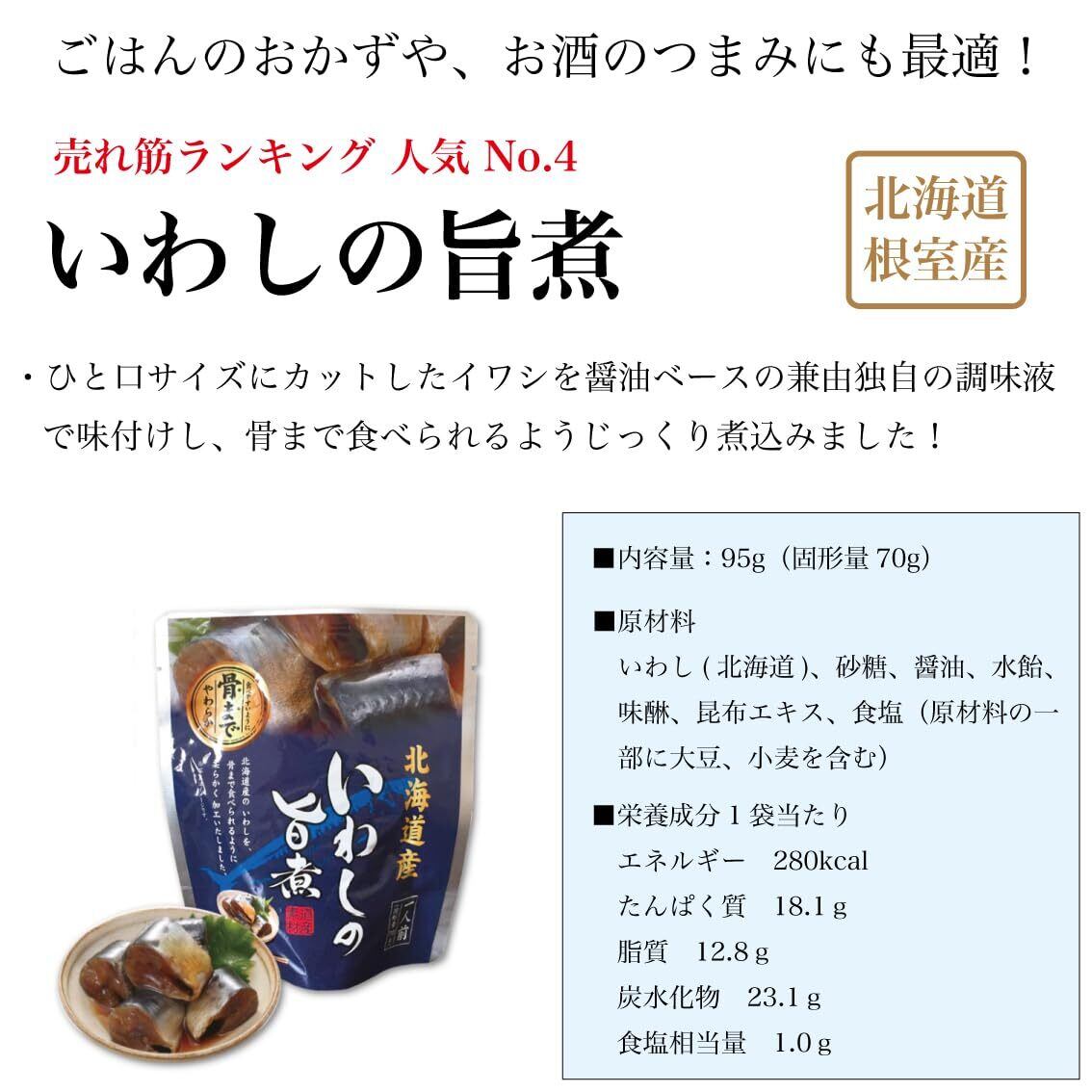 栄養バランス抜群、骨までやらかい、調理いらずの「兼由」《北海道根室産》レトルト食品 人気5種類 10食詰め合わせです。