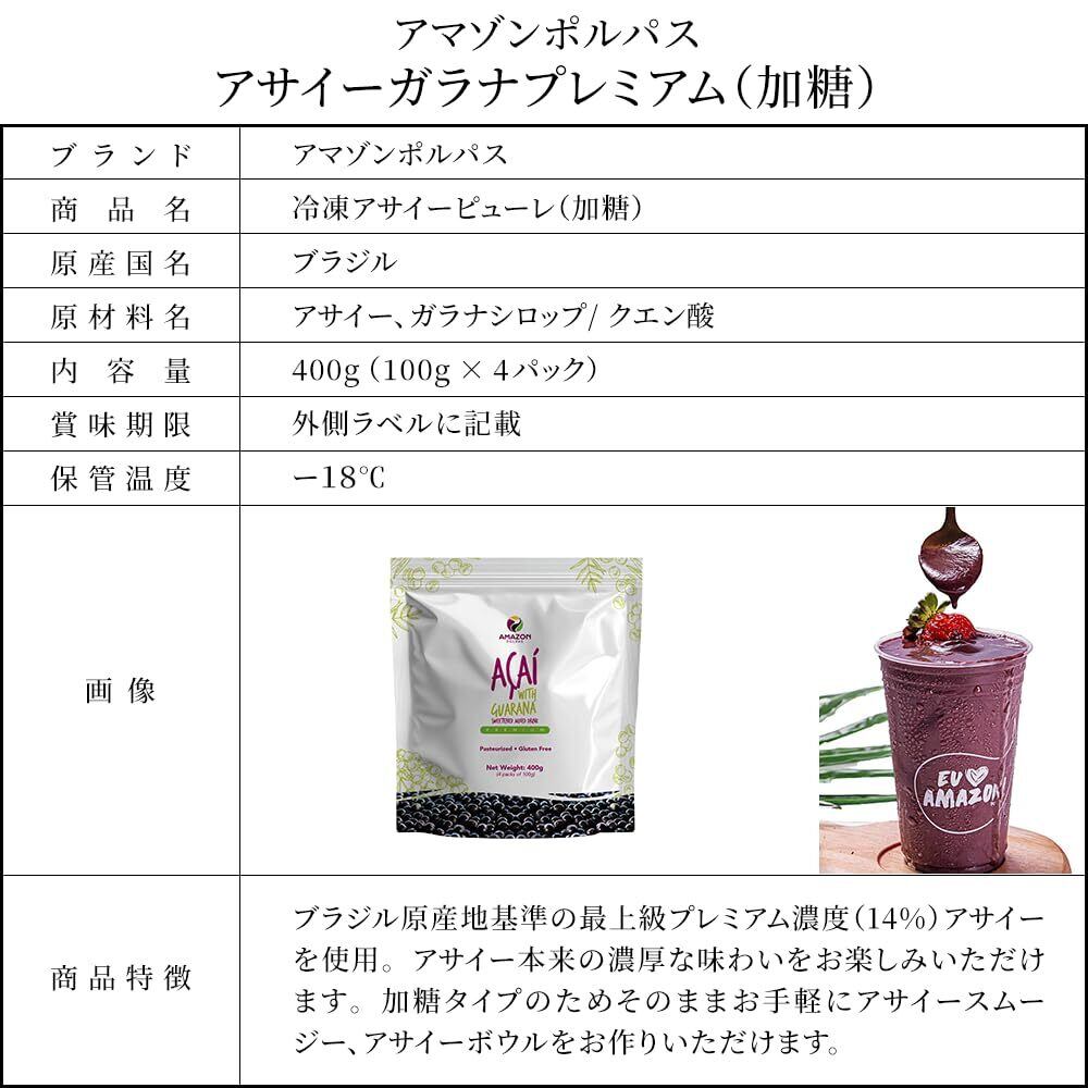 ■原材料:(プレーン)アサイー、クエン酸 (加糖タイプ)アサイー、ガラナシロップ、クエン酸