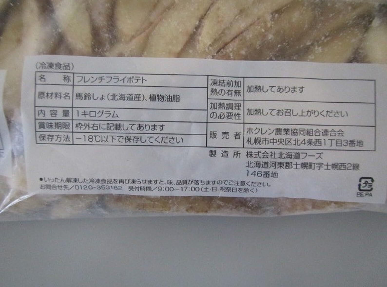 ①商品特徴:ホクホクしたおいしさが特徴の北海道産馬鈴しょ。 ホクレンのフレンチフライポテトは、その中でも加工に適した粒よりの馬鈴しょを選び、食べやすく加工し、急速冷凍しました。 ②お召し上がり方:凍ったままのフレンチフライポテトを、170℃前後の油でこんがりきつね色になるまで揚げてください。 ③使用・保管上の注意:いったん解凍した冷凍食品を再び凍らせますと、味、品質が落ちますのでご注意ください。
