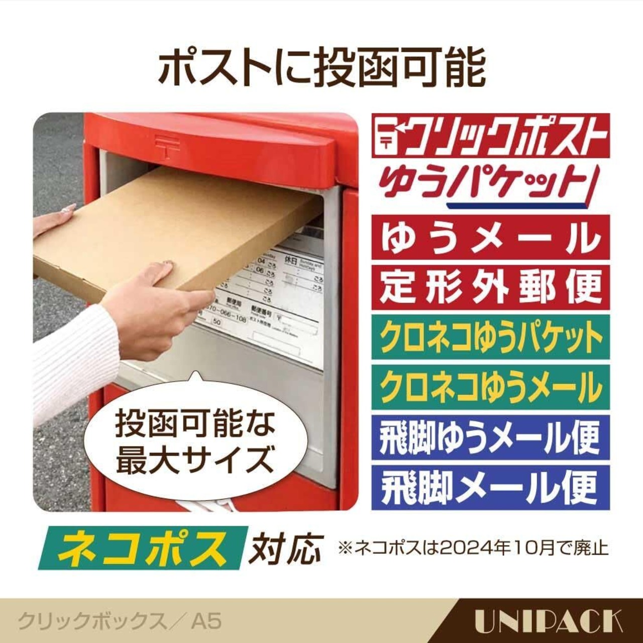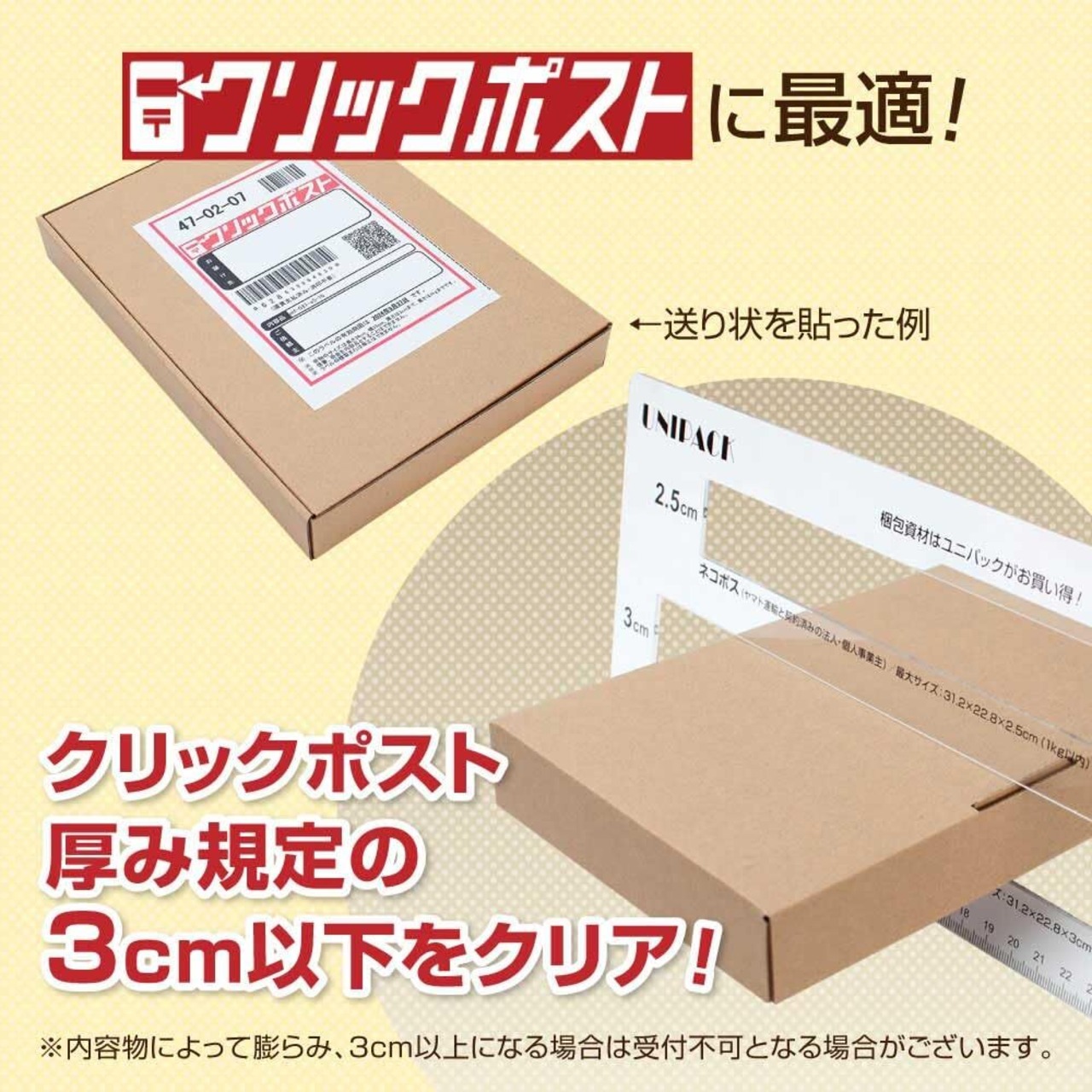 UNIPACK A5サイズ ダンボール N式【10枚セット(85円/枚)】3cm対応 最大サイズ ネコポス クリックポスト コンパクト 箱 ゆうパケット らくらくメルカリ便 宅急便 コンパクト 定形外 規格内 梱包箱 日本郵便 ゆうメール マルチケース フリマ オークションサイト (柄無し, 10枚)