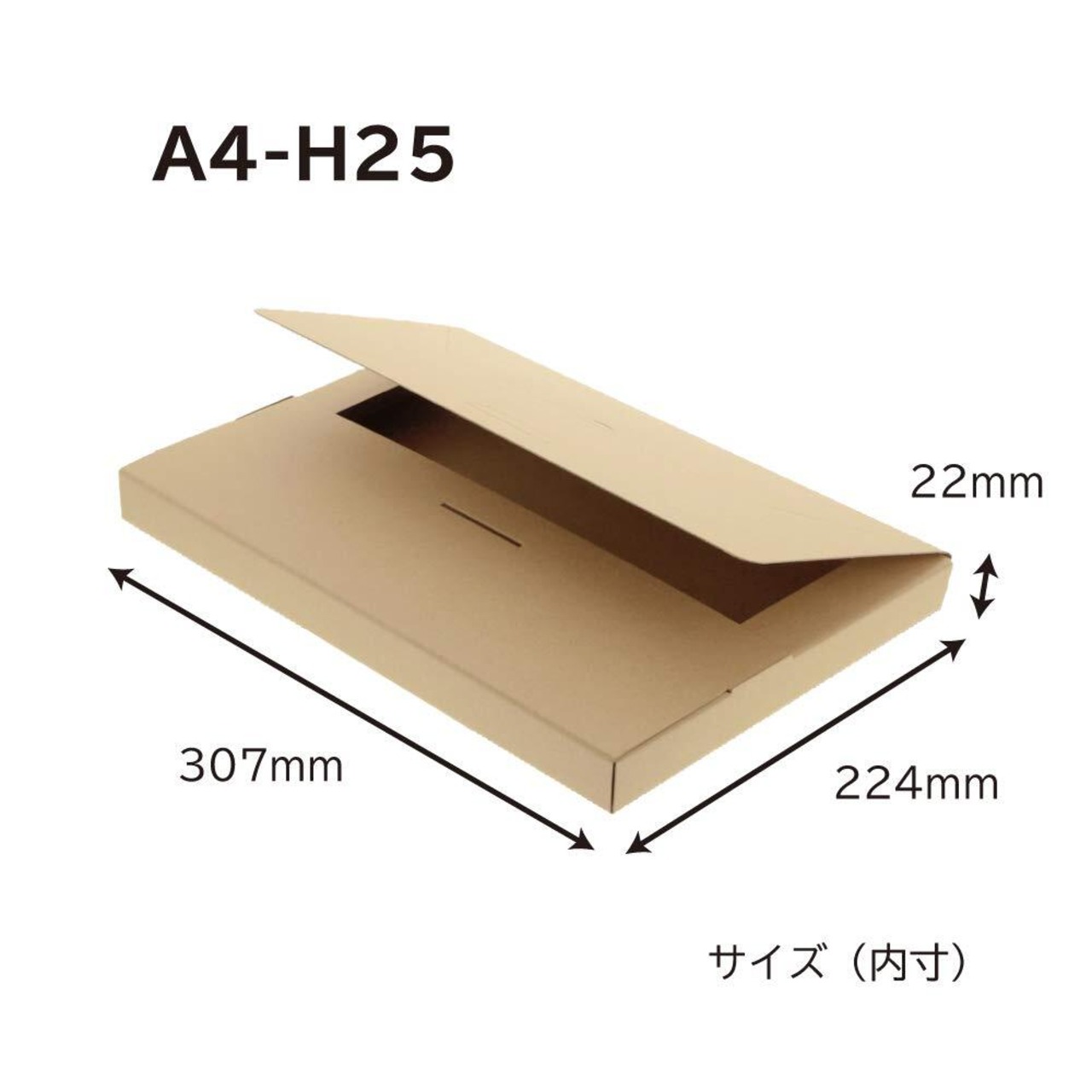 厚みは22mmなので、書類やパンフレットなど薄めの荷物にぴったりなダンボールです。