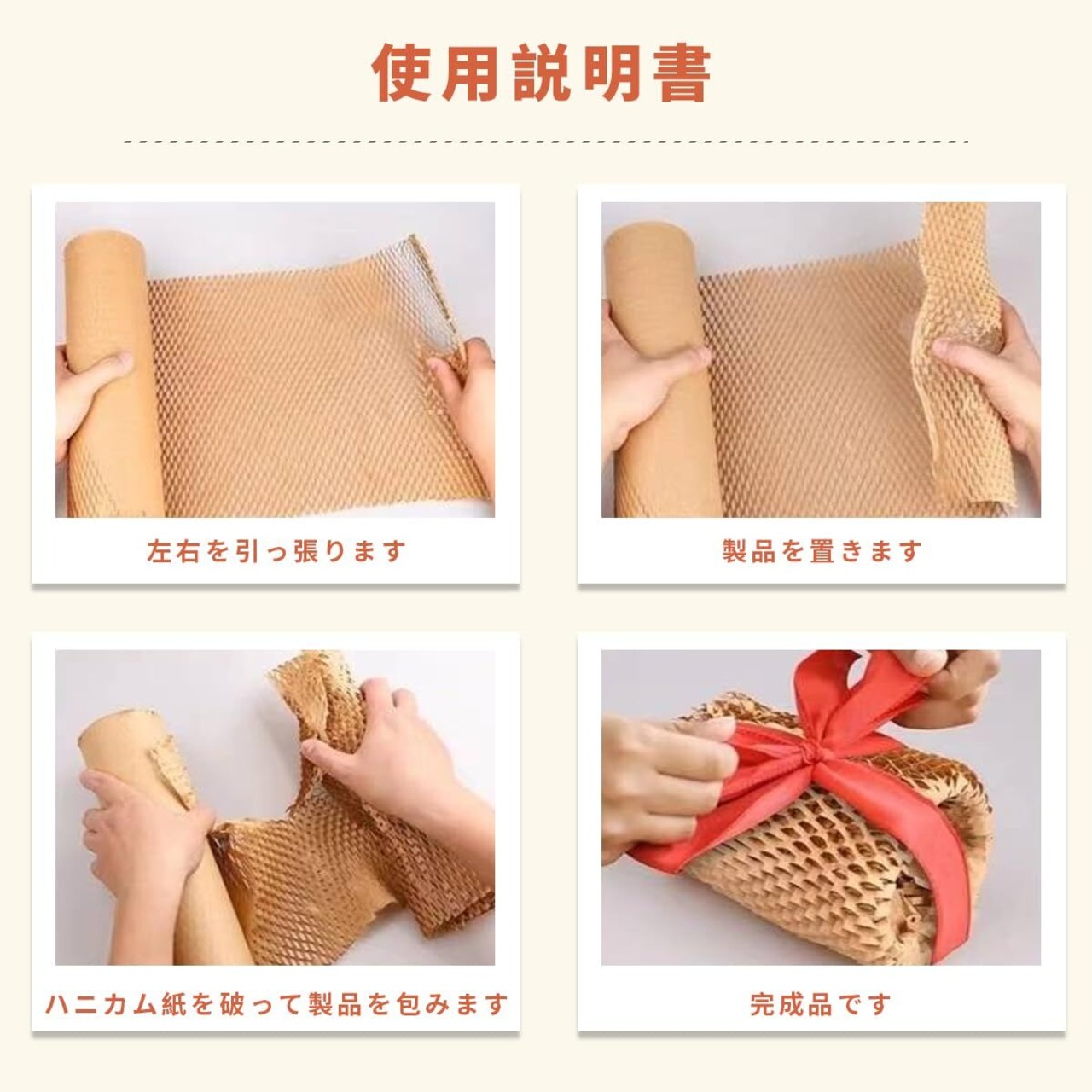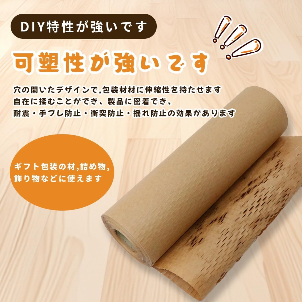 【使いやすい】ハサミ或いはガムテープが必要なく、包装材は包装効率を高めました。ハニカム構造を引き出し、製品を置き、包装が終わったら手で破り、密封加工が完了します。