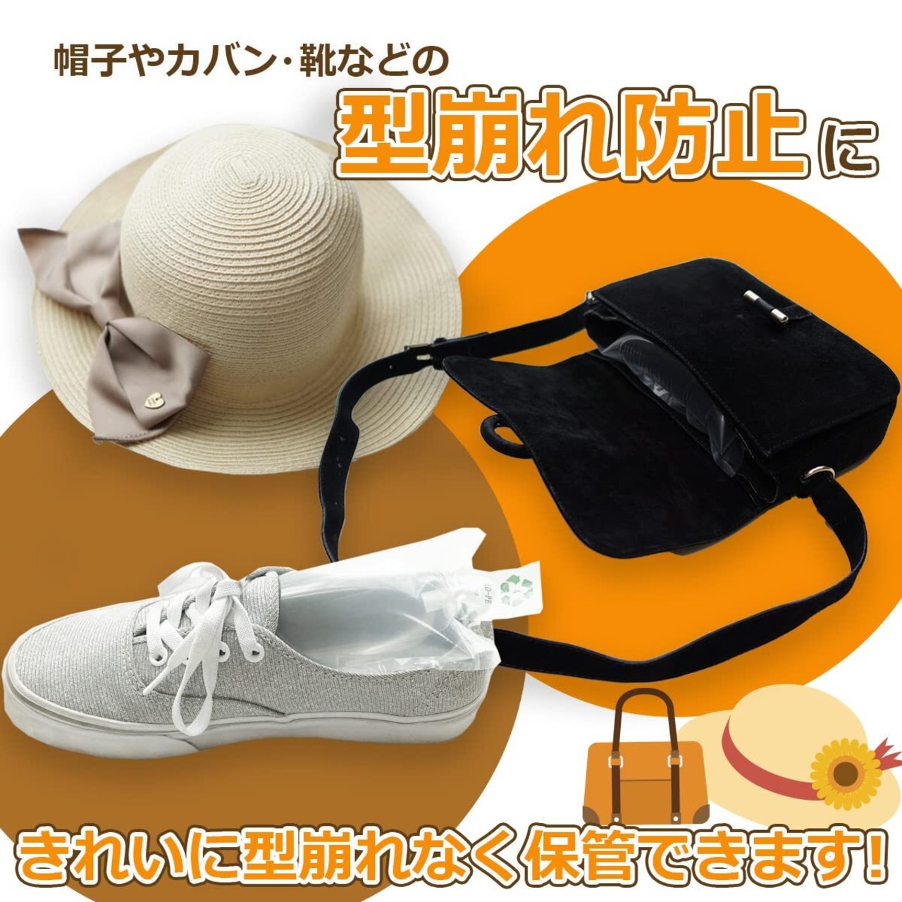 【型崩れ防止】 帽子やバック・靴などは何も入れずに保管していると形が崩れてしまいますが、エアクッションを入れる事により形状維持ができます。 ※ポンプは付属していませんのでご注意ください!