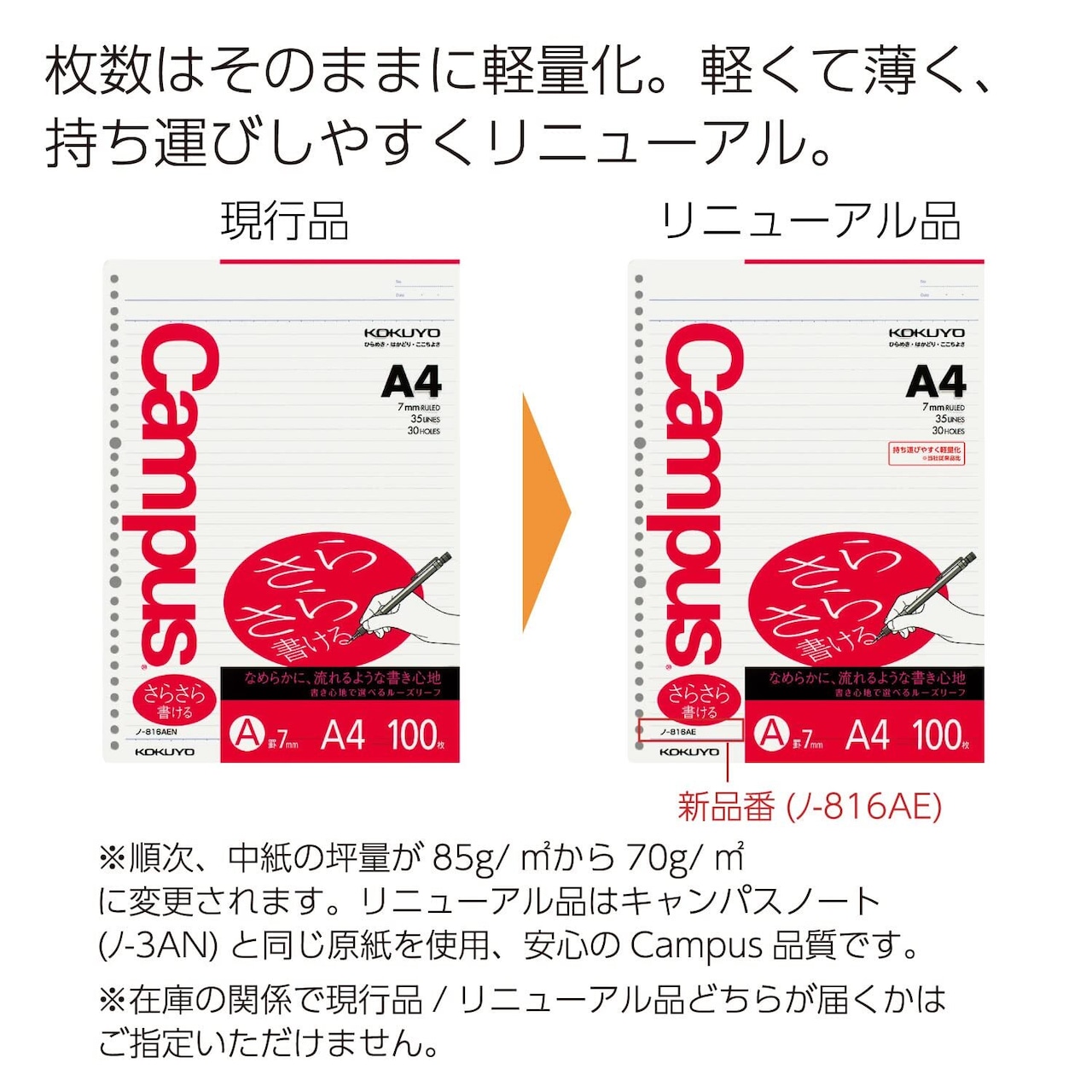 コクヨ キャンパス ルーズリーフ さらさら書ける A4 A罫 100枚 ノ-816AE