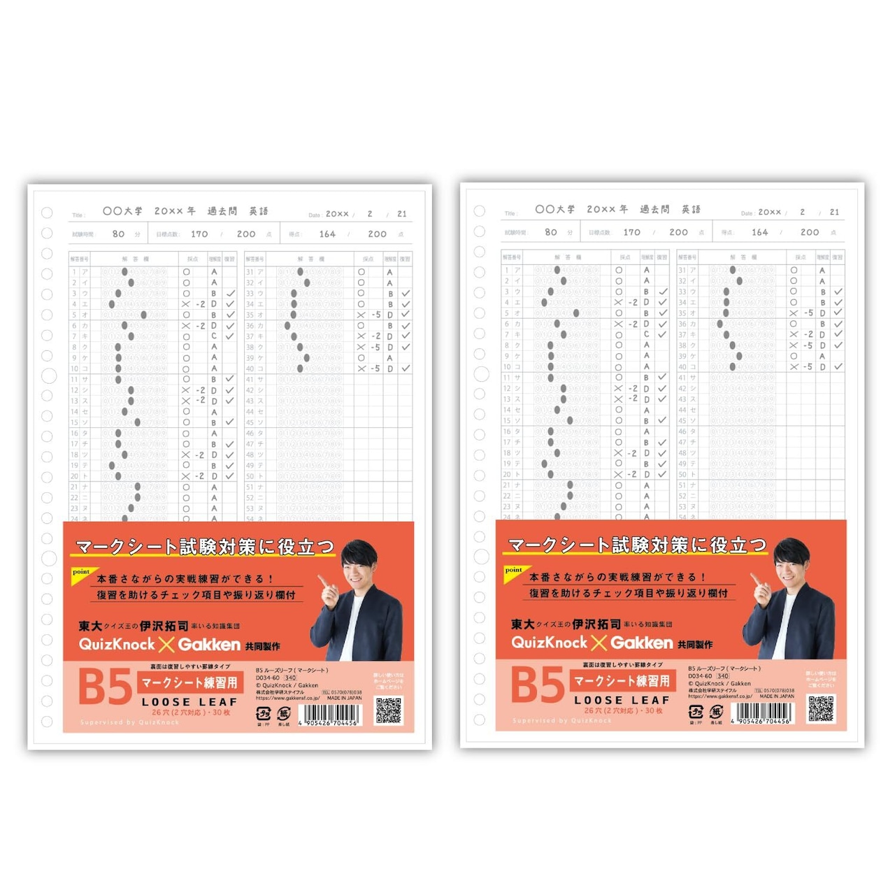 学研ステイフル STUDY STATIONERY B5 ルーズリーフ マークシート 練習 2パック Z06806