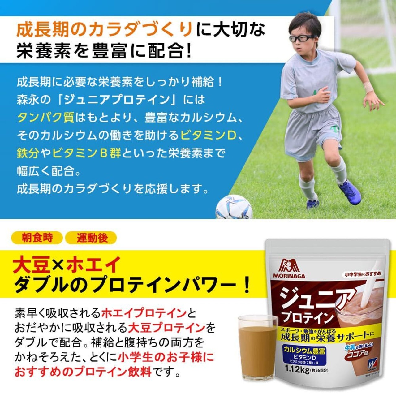 森永製菓 ジュニアプロテイン ココア味 1.12kg (約56回分) ウイダー 森永ココア カルシウム・ビタミン・鉄分配合 合成甘味料不使用 1,120g 1日1杯で約8週間分 【 限定】