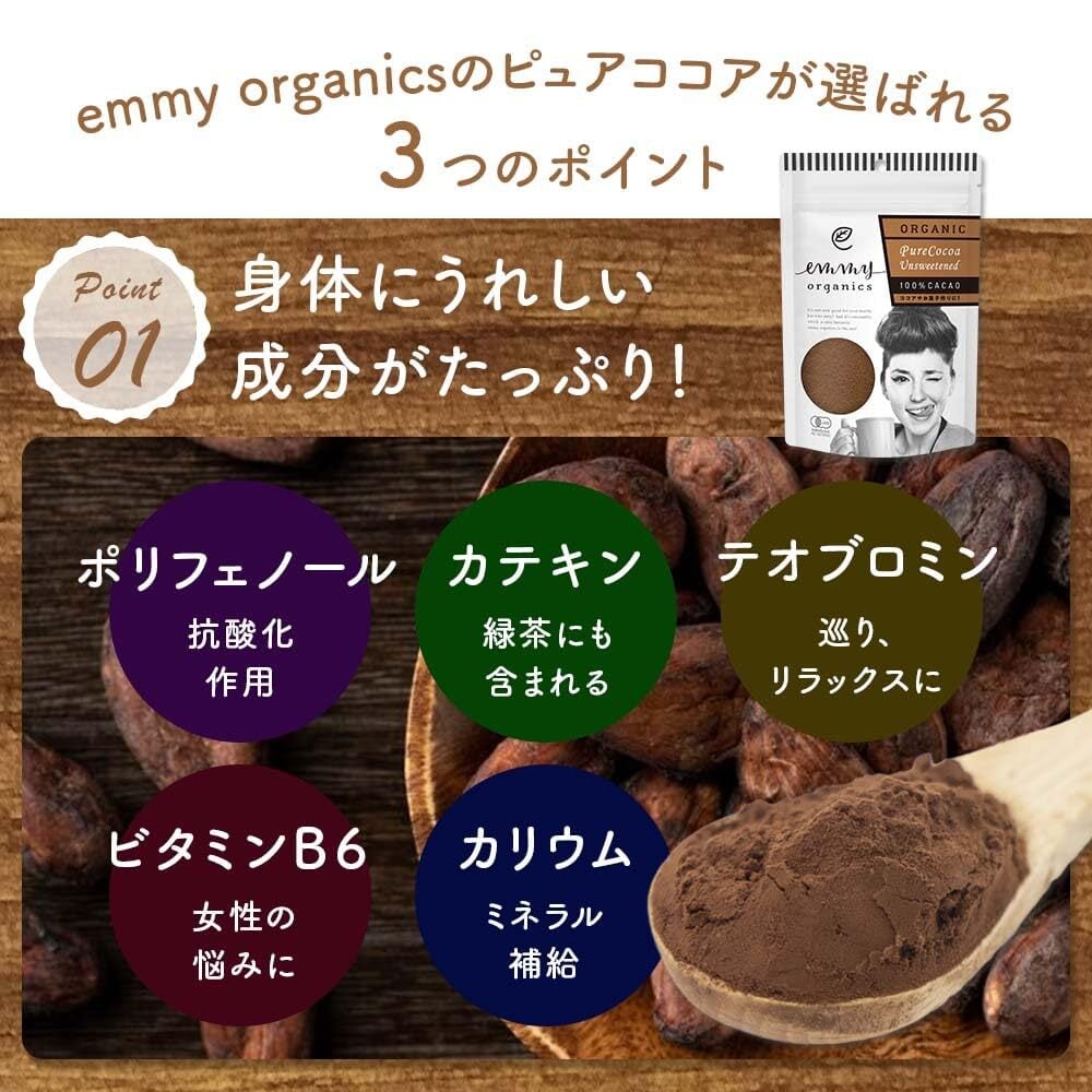 emmy organics 【400g】オーガニック 純ココアパウダー(ピュア)【有機JAS認証】無糖 無着色 無香料 ピュアココア オランダ産