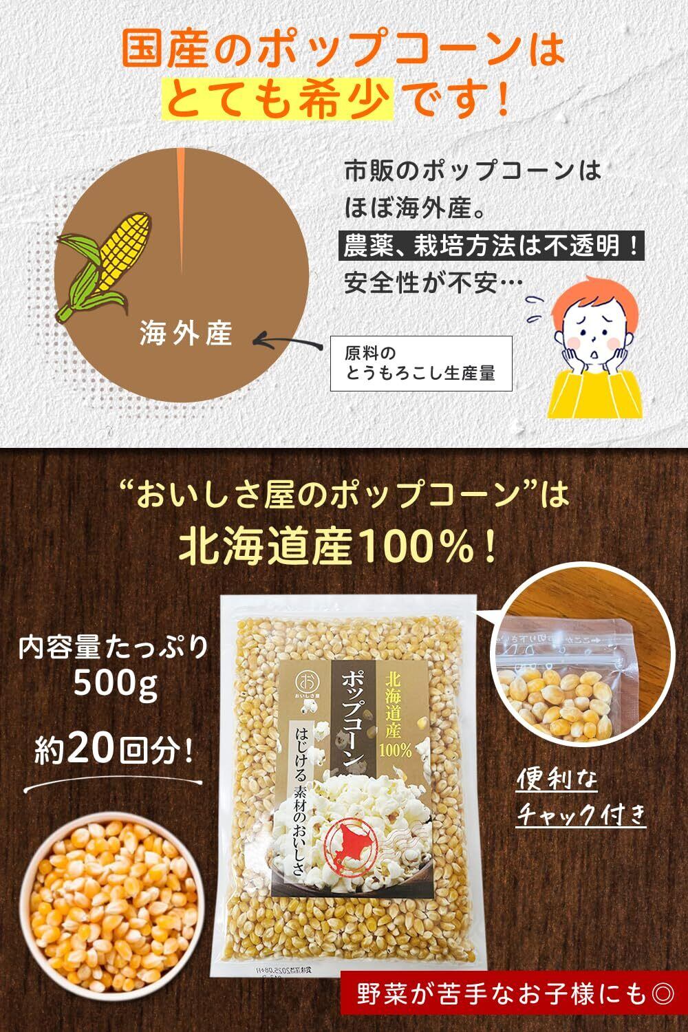 国産 ポップコーン 豆 北海道産 無添加 500g 食物繊維 たっぷり ダイエット お菓子| おいしさ屋