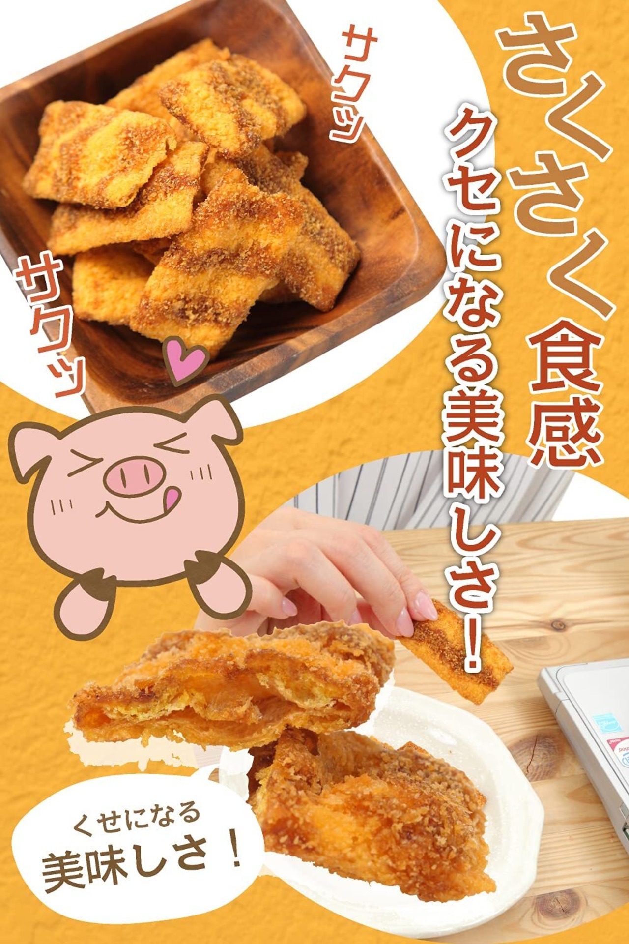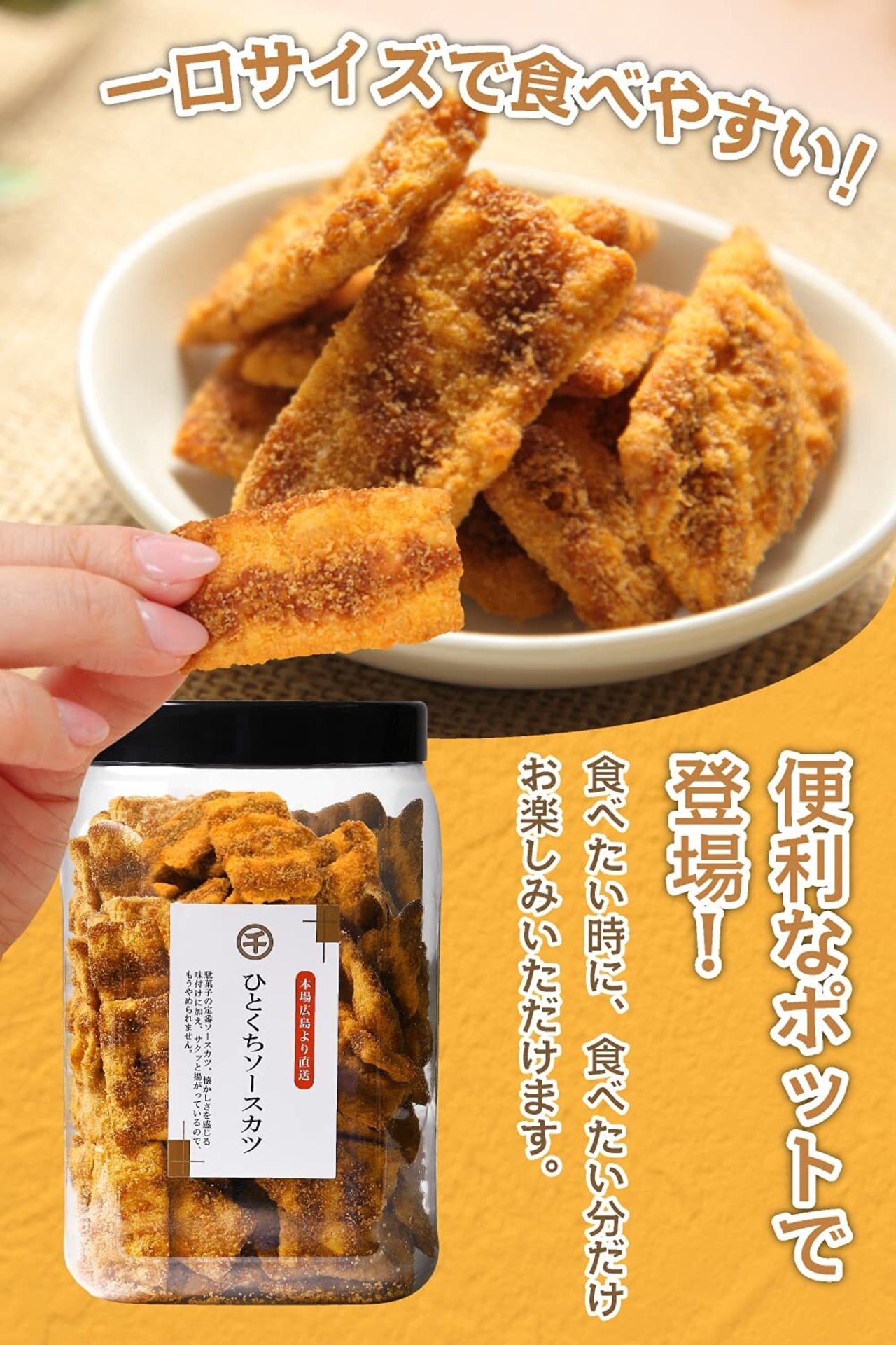 【ひとくちサイズで食べたい分だけ】パクパクと気軽に食べられるひとくちサイズ。サクサクとした食感が楽しめ、食べ始めると止まらなくなってしまう美味しさです。普段食べるスナック菓子のように身近で、オタフクソースを使用し本格的なソースカツのような味わいが楽しめる駄菓子です。お子様のお菓子として、ビールやお酒のおつまみとしても相性抜群です。