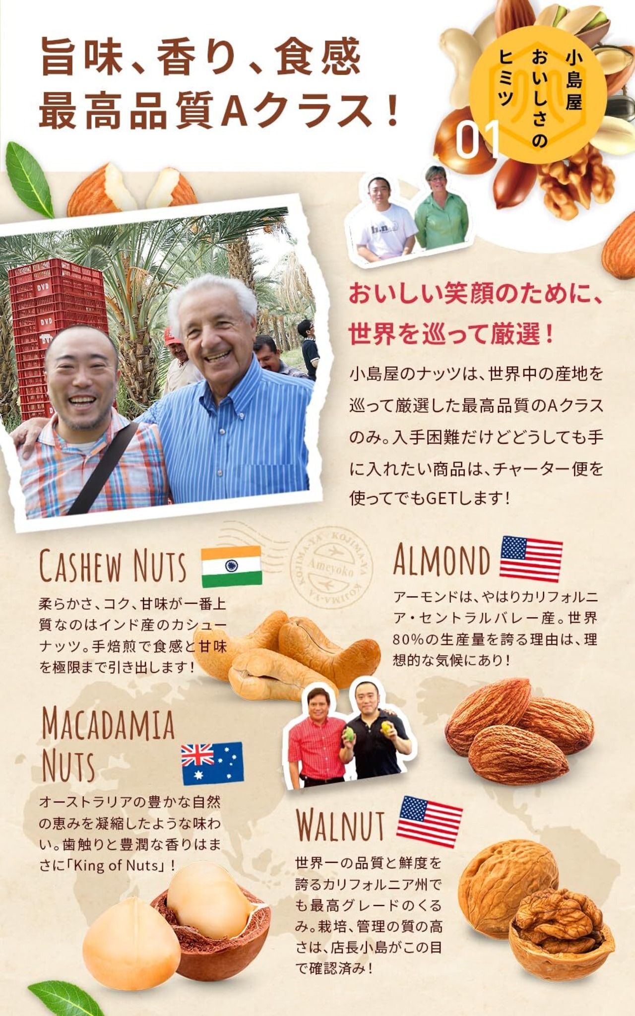 【 小島屋 】 無添加 ミックスナッツ 1kg 無塩 無油 素焼き 自社焙煎 創業60年 直火深煎