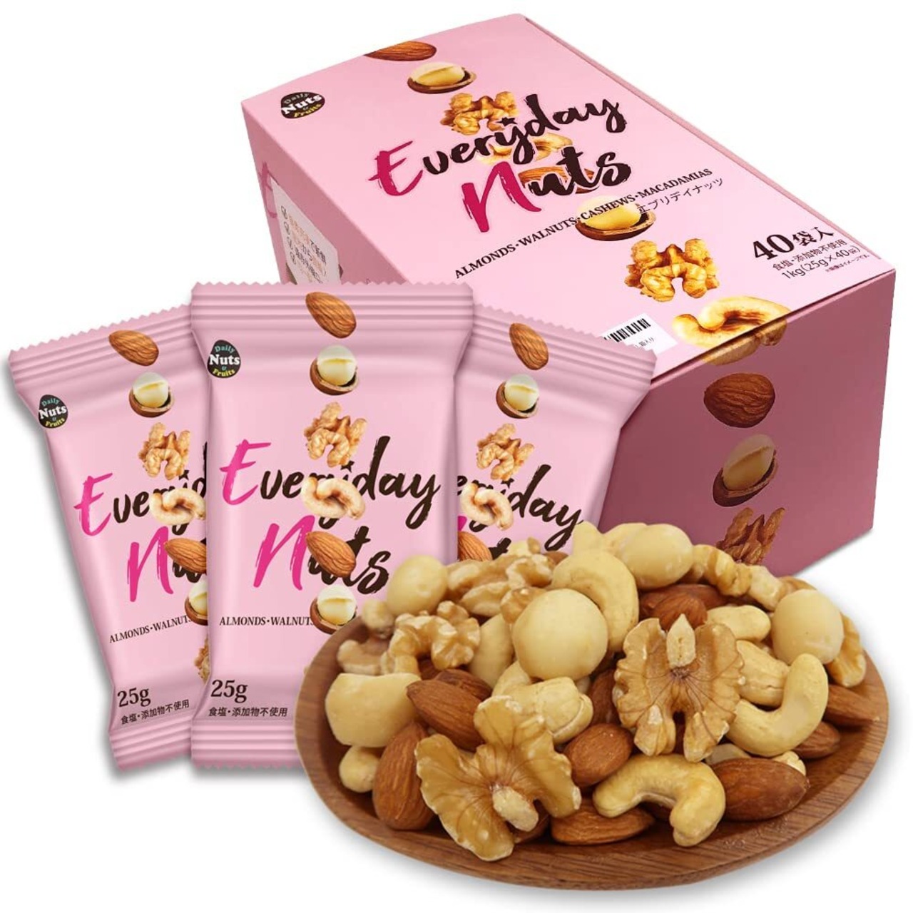 小分け 4種ミックスナッツ 1kg (25gx40袋) 個包装 USエクストラNo.1アーモンド使用 箱入り 産地直輸入 無塩 無添加 植物油不使用