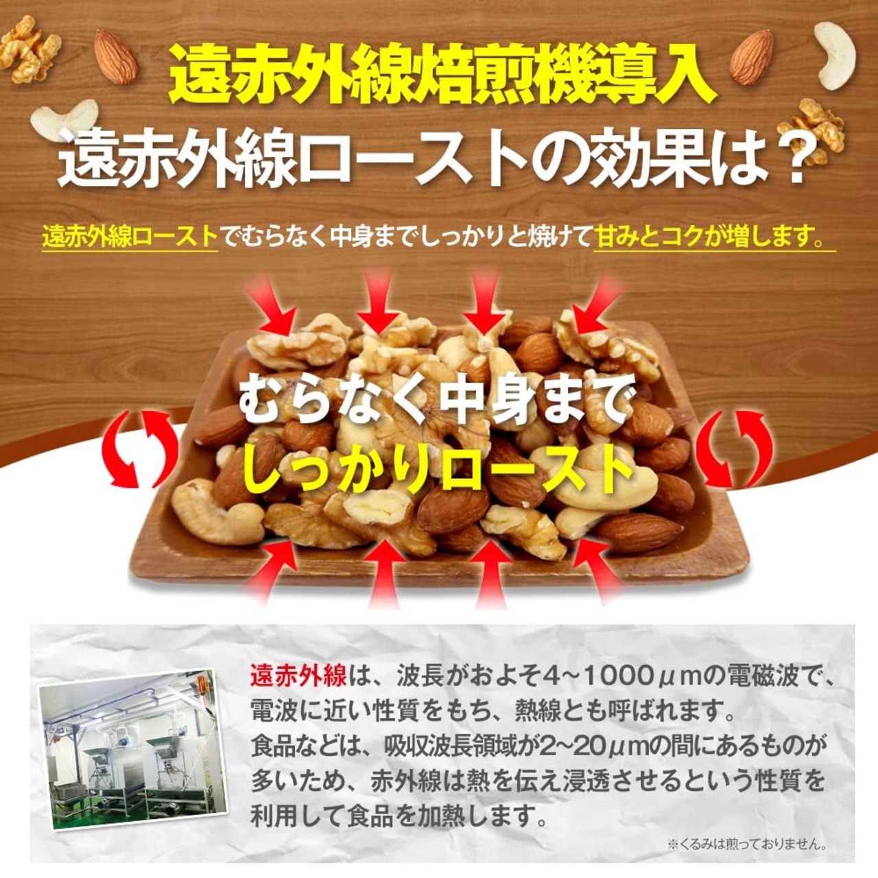 ご不明点がございましたらフリーダイアル(0120-229-545)までご連絡ください。くるみ・マカダミアはローストしていない「生」です国内自社工場で焙煎(アーモンド・カシューナッツのみ焙煎)して袋詰め ◆現地農場で買い付けた原材料を、商社を通さずそのまま国内自社工場に直送し、製造しています。 ※徹底した品質検査を行っていますが、自然由来の製品なので、まれにナッツの皮や殻が混入する場合がございます。ご了承ください。