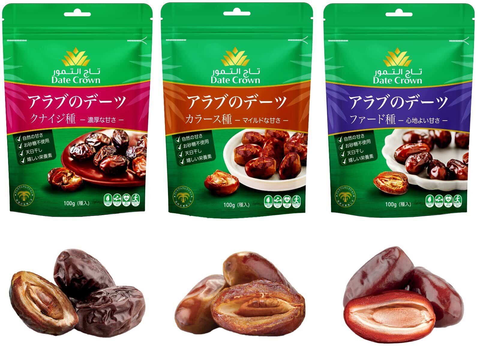 デーツクラウン デーツお試しセット 3種食べ比べ 無添加 各100g (3袋セット) 残留農薬検査済 非遺伝子組換え スーパーフード ドライフルーツ