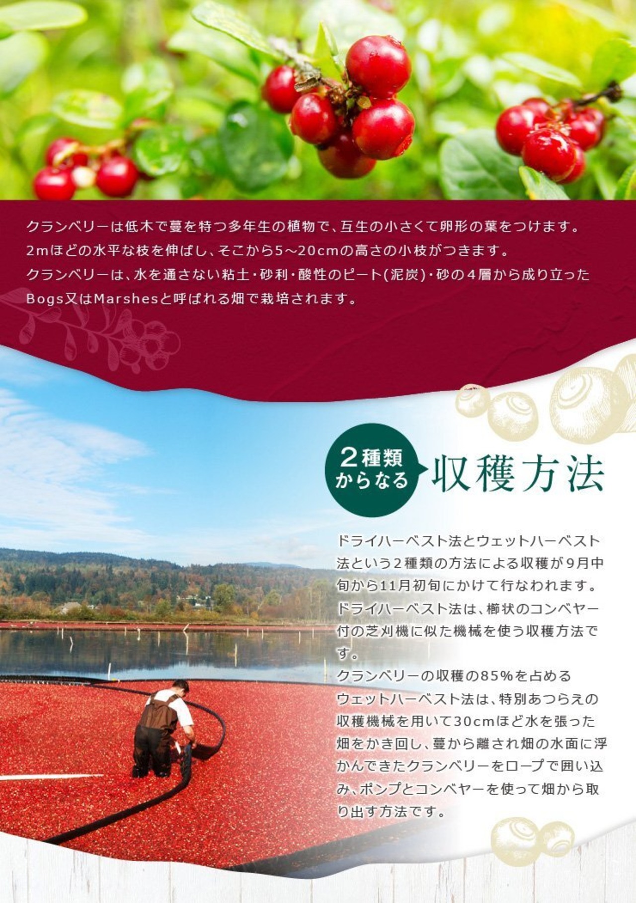 原産国:アメリカ <br> 原材料:クランベリー・砂糖・サンフラワーオイル <br> 形態:袋入り <br> 賞味期限:120日 <br> 保存方法:直射日光・高温多湿を避け、冷暗所にて密閉保存下さい。 <br> 開封後はどうぞお早めにご使用下さい。 <br>