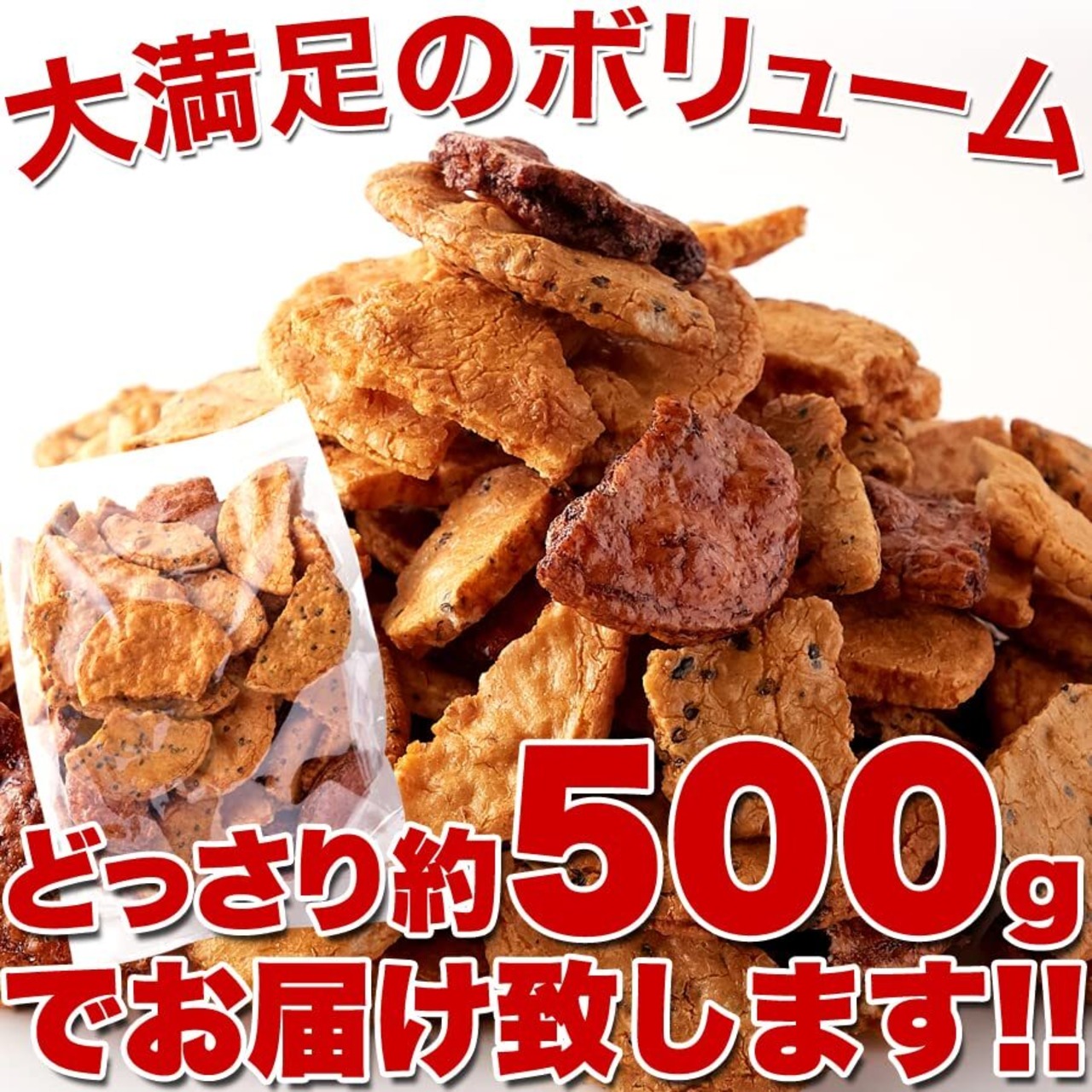【約500gでお届け!!】素材と製法にこだわった割れ醤油煎餅3種を無選別にどっさり約500g、簡易包装でお得にお届けします。 ※敢えてせんべいを割り、断面にタレを染み込ませた商品で、割ったせんべいのみ500g入れております。せんべいの種類は三種類全て入りますが、割合が偏る可能性がございます。 また、簡易包装の為、配送時などの衝撃でさらに割れや欠けが生じる可能性がございます。 予めご了承の上、お買い求めください。