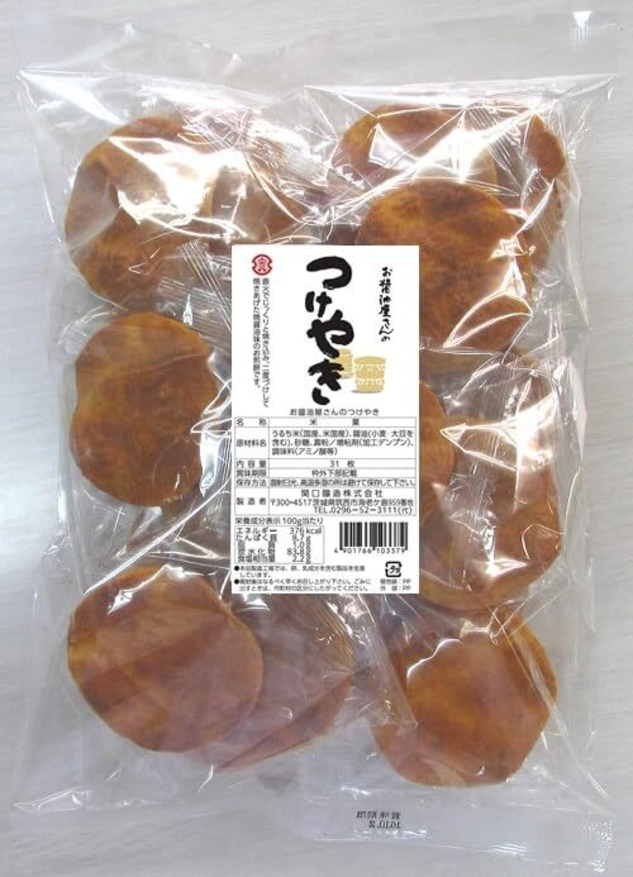 原材料:うるち米(国産)、醤油、砂糖、澱粉、増粘剤(加工デンプン)、調味料(アミノ酸等) (原材料の一部に大豆・小麦を含む)