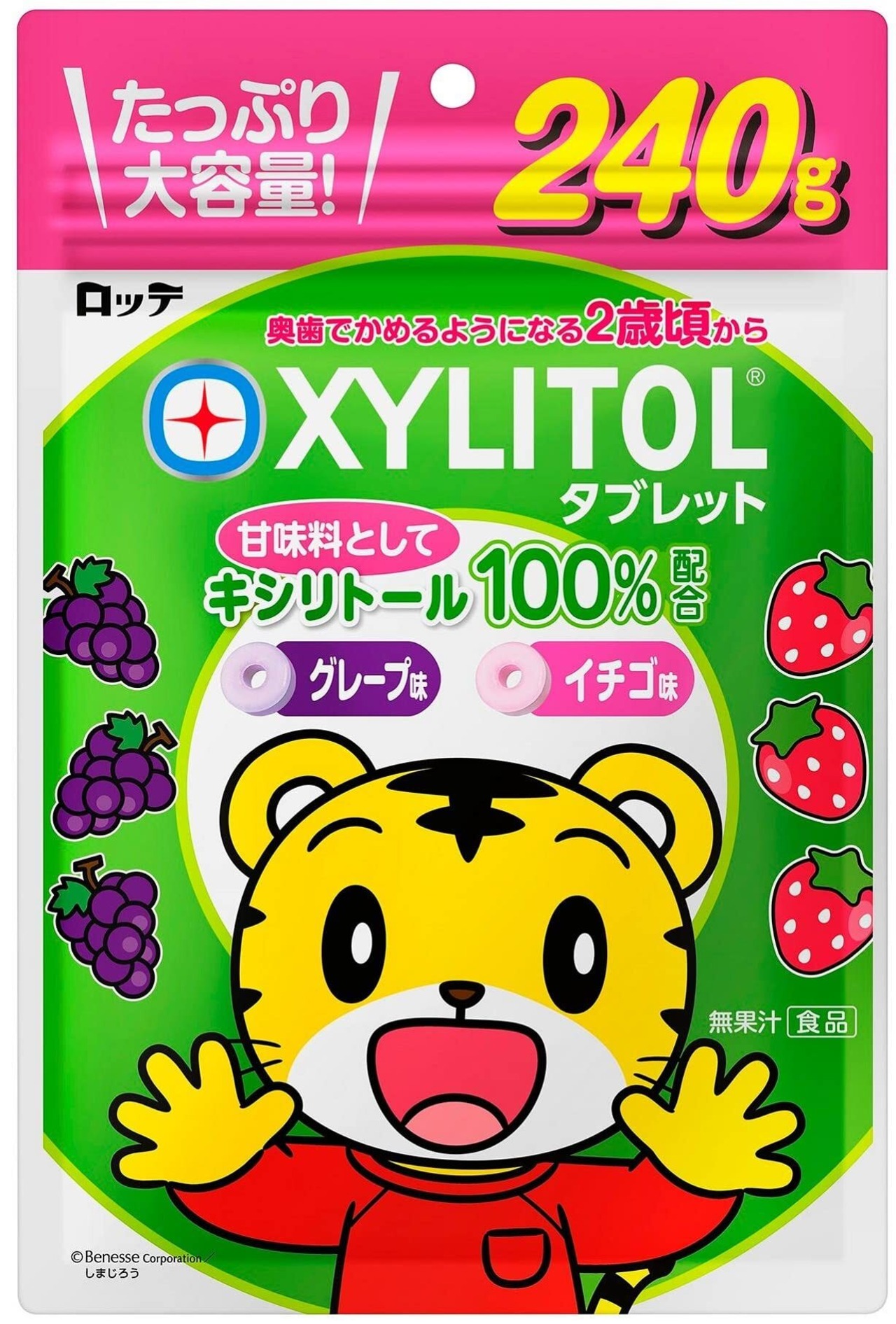 キシリトールが甘味料中100%配合されているタブレットで、子供に人気のグレープ味とイチゴ味の2種類の味が楽しめます。2種類の味を選びながら食べられますので、楽しみながらキシリトールを続けられます。子供が食べやすい穴あきタイプのタブレットです。大人気商品キシリトールタブレット史上最大容量の240g入りです。歯みがきのご褒美としても食べて頂けます。