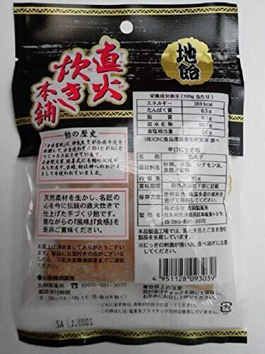 昭和8年より続く、時間をかけた伝統の直火炊きにこだわった手作り飴です。天然素材を生かした昔ながらの風味とカリッとした食感を楽しめます。便利なチャックが付いています。天然桂皮を使用し、まわりにはシナモン末をりんかけしています。にっきの刺激が強いため食べすぎに注意してください。