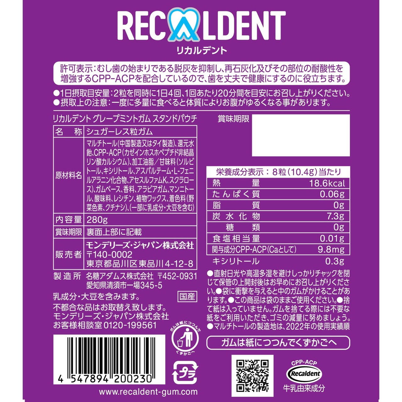 モンデリ―ズ リカルデント グレープミント スタンドパウチ 大容量 280g