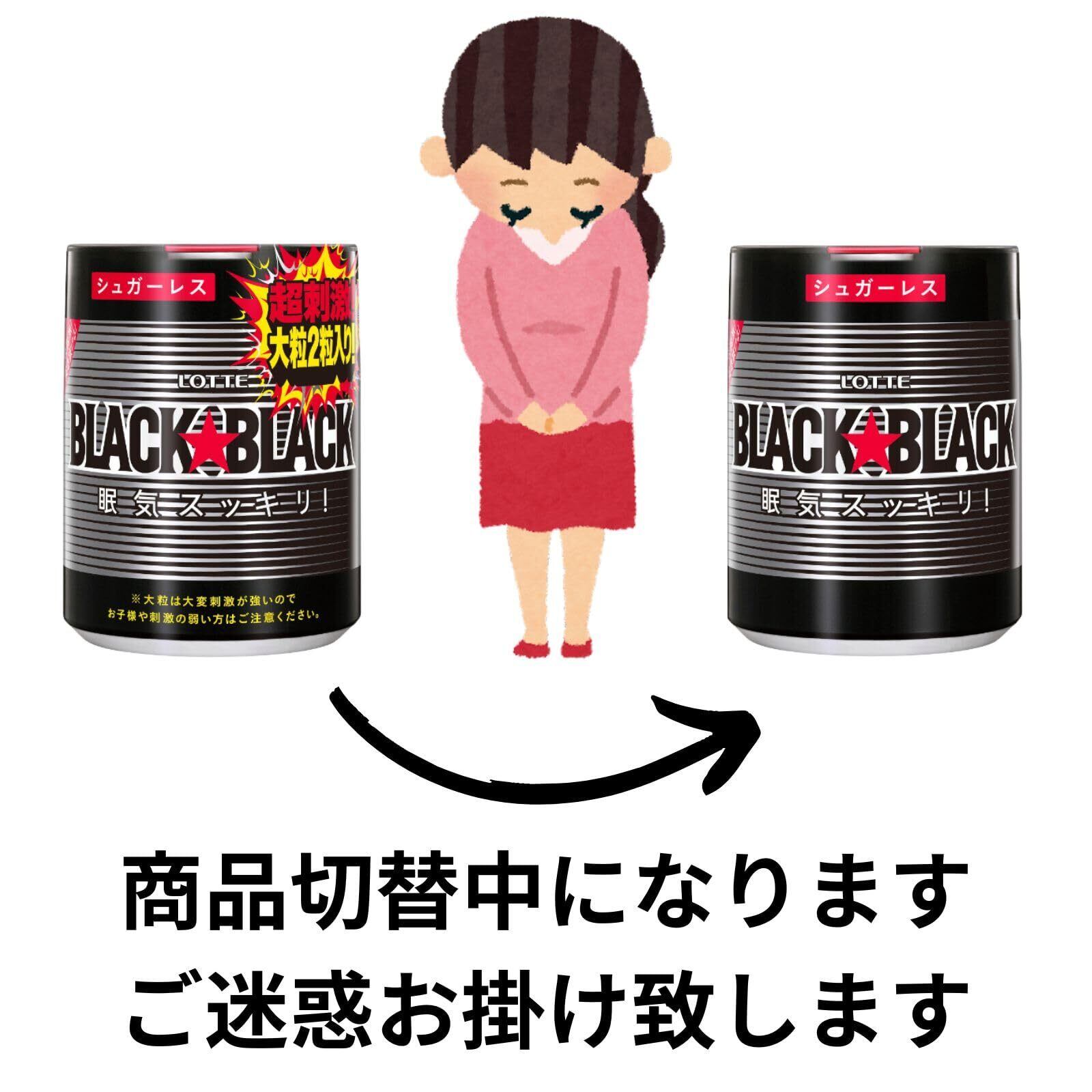 <ブラックブラック>マルチトール(外国製造)、植物油脂、ガラナ抽出物、菊花抽出物、イチョウ葉抽出物/甘味料(キシリトール、アスパルテーム・L-フェニルアラニン化合物、アセスルファムK、スクラロース)、ガムベース、香料、増粘剤(アラビアガム)、着色料(カカオ、クチナシ、カラメル)、カフェイン、光沢剤、(一部にゼラチンを含む) <大粒>マルチトール(外国製造)、エリスリトール、還元パラチノース、植物油脂、ガラナ抽出物、菊花抽出物、イチョウ葉抽出物/ガムベース、香料、増粘剤(アラビアガム)、着色料(カカオ、クチナシ、カラメル)、カフェイン、甘味料(キシリトール、アスパルテーム・L-フェニルアラニン化合物、アセスルファムK)、光沢剤、(一部にゼラチンを含む)
