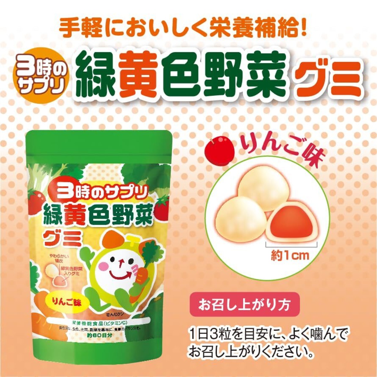 3時のサプリ 緑黄色野菜グミ 約2ヶ月分 子供 こども 子ども 栄養 補助 野菜 嫌い 偏食 サポート りんご味 (1袋)