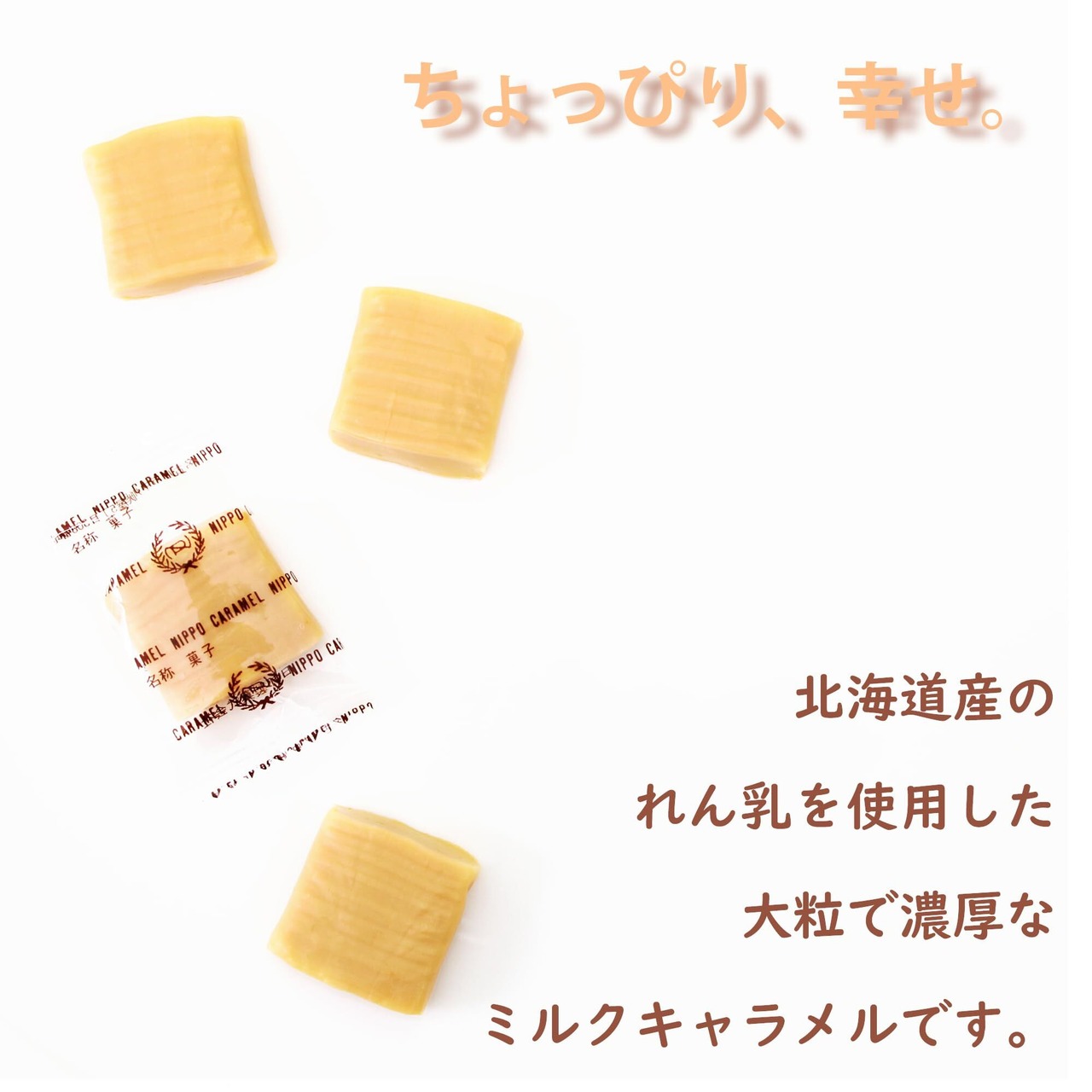 北海道産れん乳を使用した、風味豊かな、コクのある味です。発売以来、30年間変わらぬ味の昔ながらの大粒のキャラメルです。1Kg入りの大袋ですので、会合やご家族の団欒に、小さなお子様から、お年寄りまで皆様でお楽しみください。