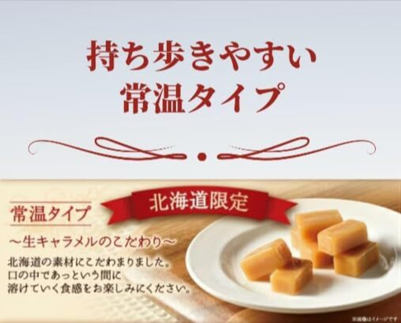 【生キャラメル】花畑牧場の生キャラメルの『常温タイプ』。 口の中であっという間に溶けていく食感の生キャラメル。冷蔵の生キャラメルに比べ常温タイプは持ち歩きがしやすいので、手土産やご挨拶のプチギフトに人気!