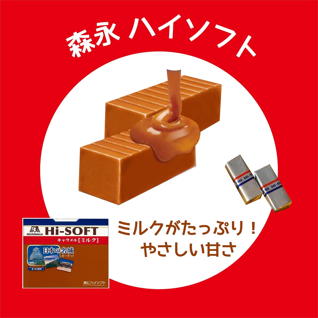 【ハイソフト】ミルクがたっぷり入ってやさしい甘さとコク深いミルクの味わいのキャラメルです。