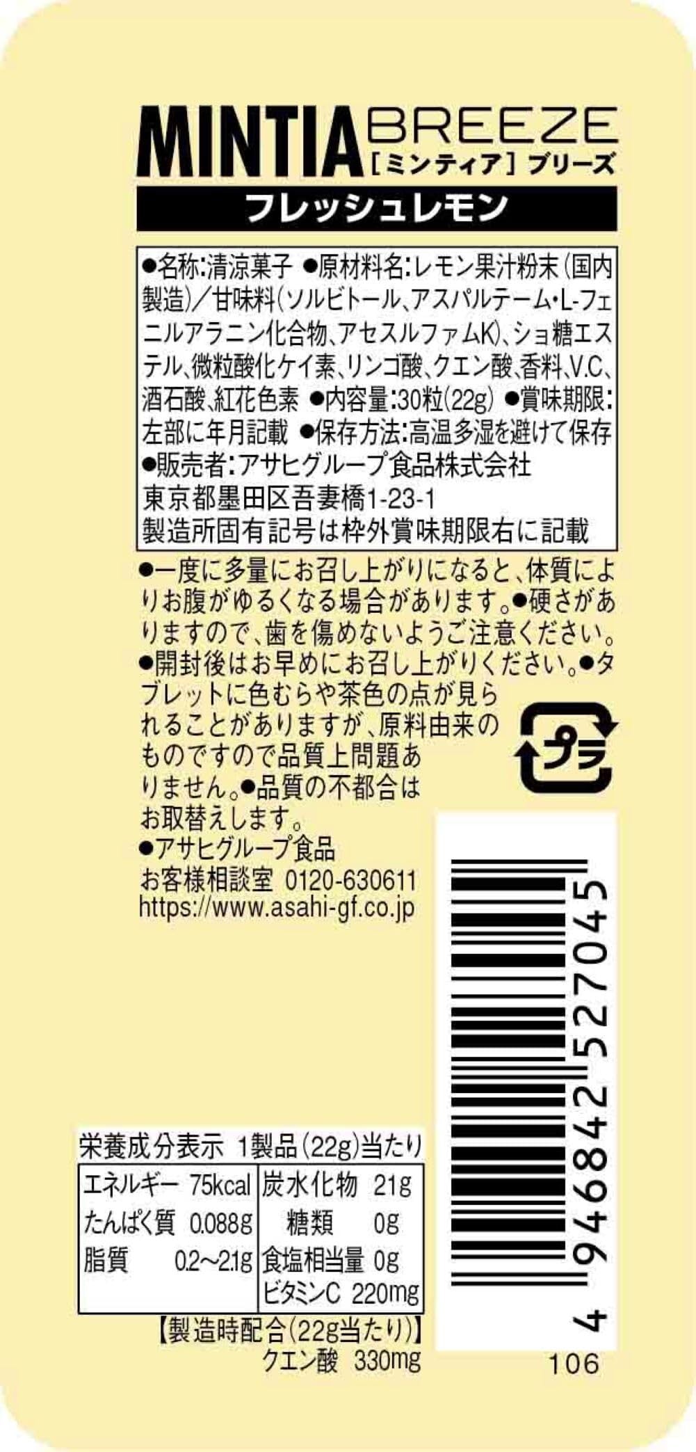 アサヒグループ食品 ミンティアブリーズ フレッシュレモン 30粒 ×8個