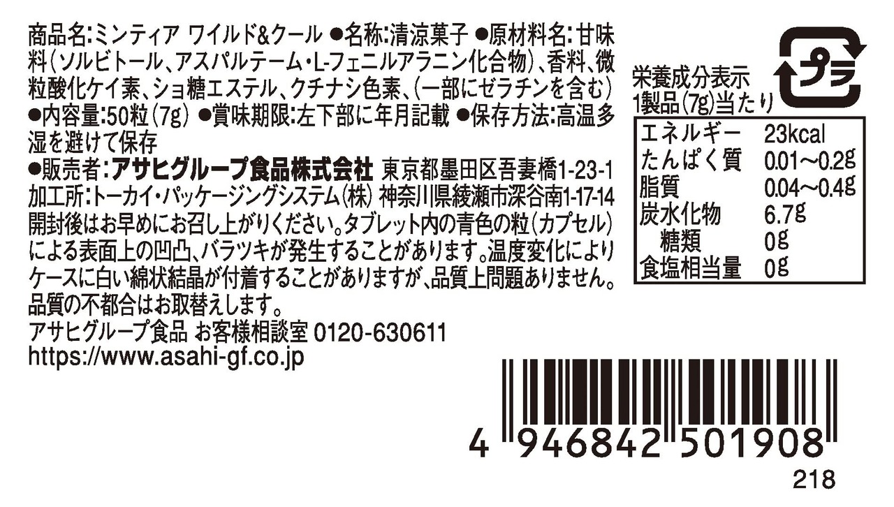 アサヒグループ食品 ミンティア ワイルド&クール 50粒×10個