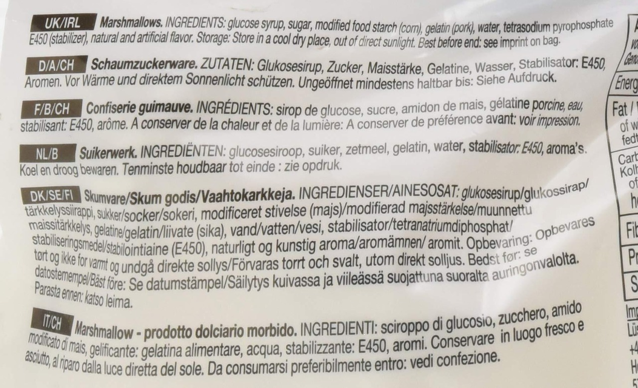 原材料:コーンシラップ、砂糖、コーンスターチ、ゼラチン/香料 乳化剤
