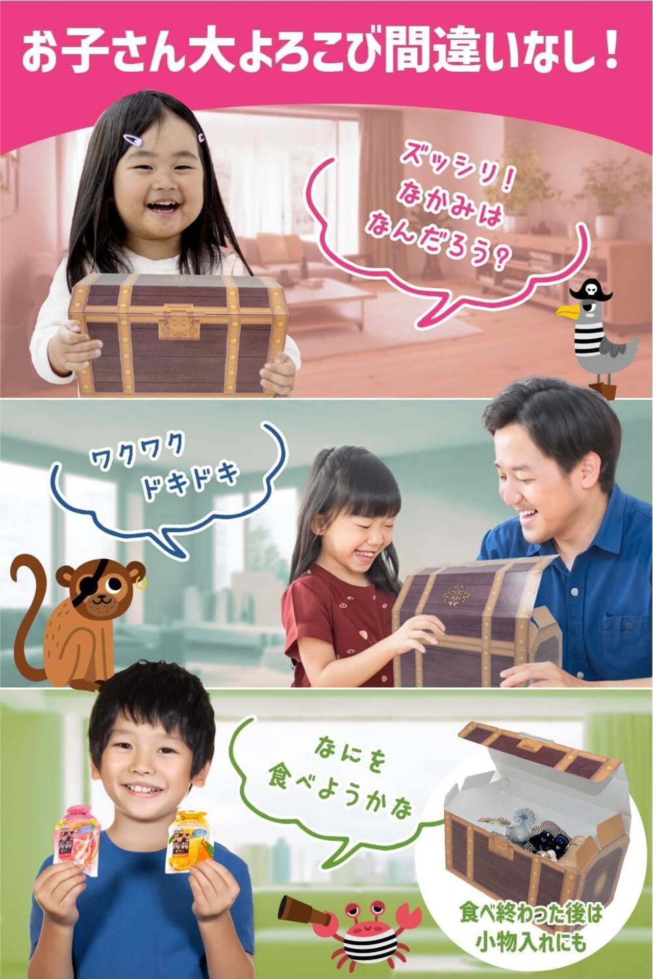 【ギフトシーン】宝箱の中にたくさんのスティックゼリーが詰まったワクワクする詰め合わせです。 すべて個包装になっており、大容量なので、パーティーや地域の催し、イベントの景品、退職や卒業のあいさつとしてのばら撒き用など様々な場面でのギフトとしておすすめです。幅広い場面で喜ばれるアイテムです。