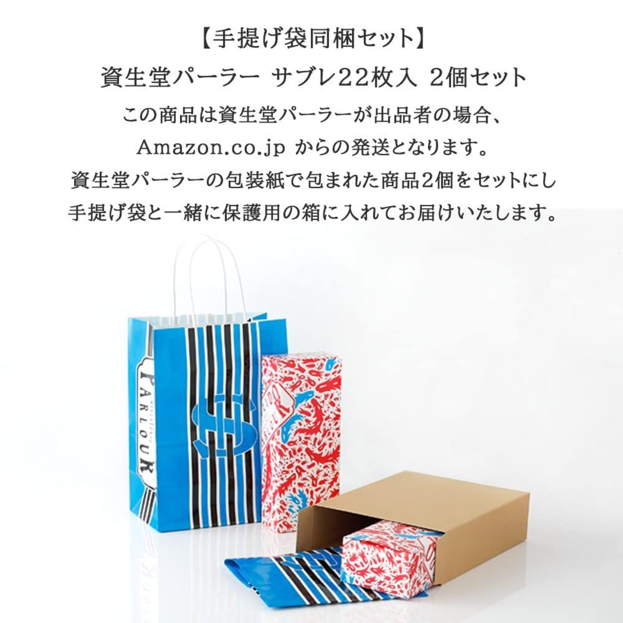 【商品について】サブレ22入を2箱と手提げ袋2枚を同封したセットです。手提げ袋は折りたたんだ状態で、包装紙で包まれたサブレ22枚入2箱と一緒に保護用の箱の中に入っております。お手土産、ご自宅用としてご利用ください。(手提げ袋付きは出品者が資生堂パーラーの場合のみとなります)