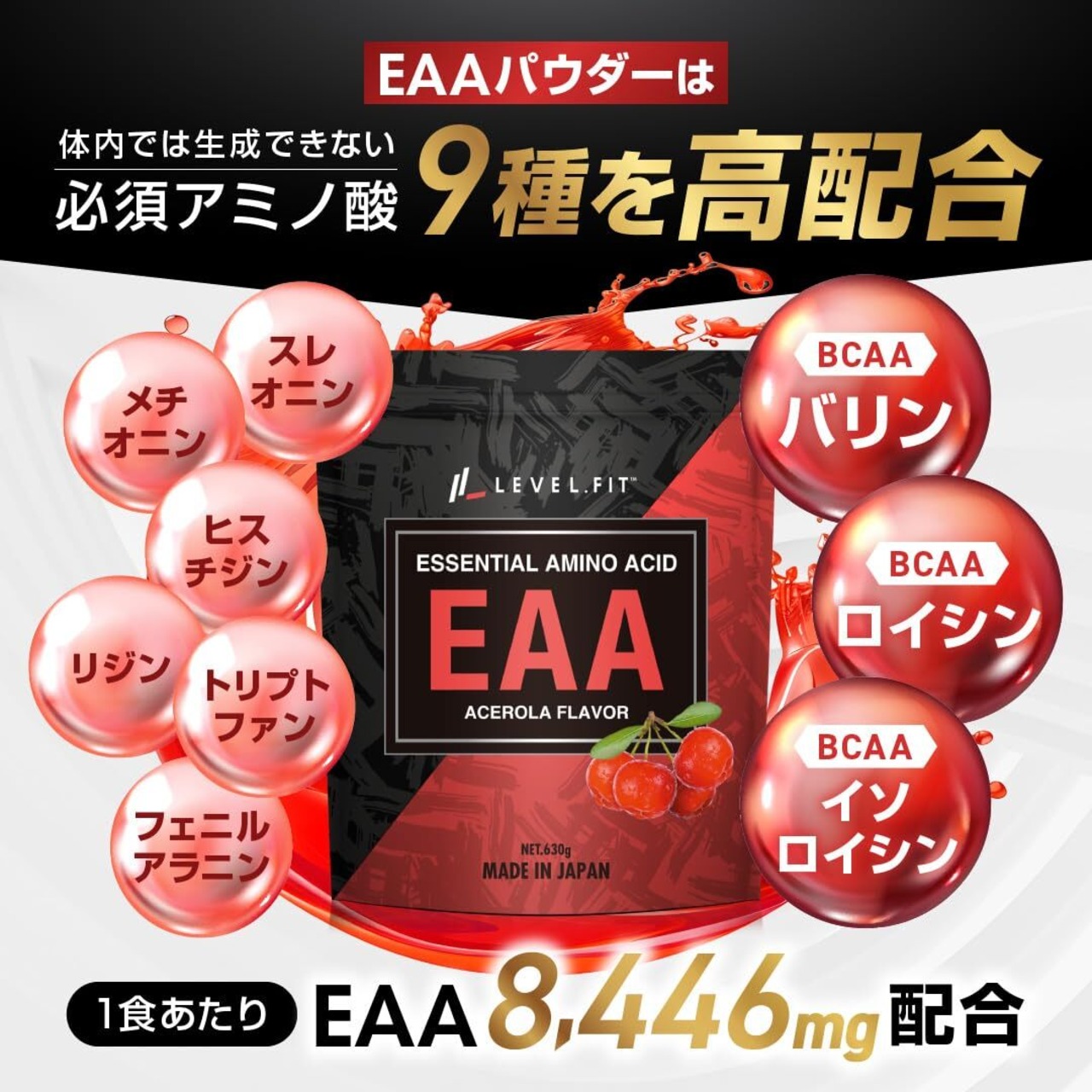 LEVEL.FIT EAA 人工甘味料不使用 無添加 アセロラ風味 630g