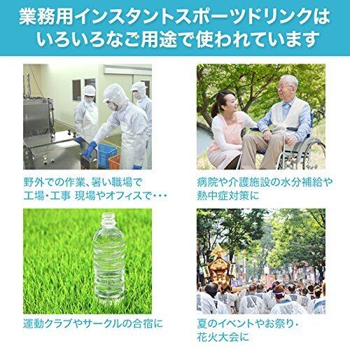 業務用として工場、病院、暑い作業現場で、またお水でサッと溶け、いつでも誰でも定量を決めれば同じ味がご提供できます。