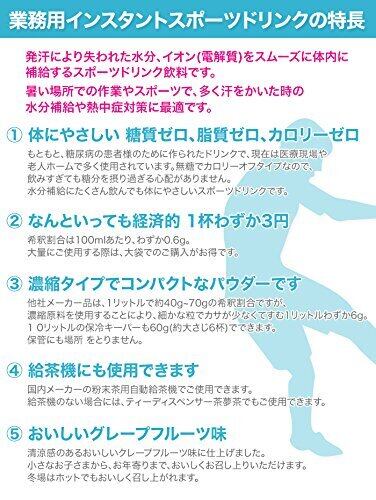 濃縮エキスパウダーを使用し、一般的なスポーツドリンクより、少量で作れ、250gで約41リットル作れます。飲みやすいグレープフルーツ風味