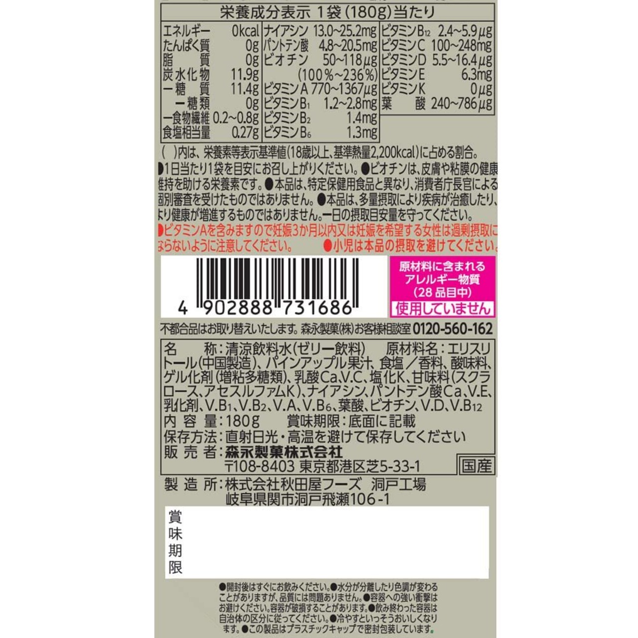 inゼリー マルチビタミン カロリーゼロ パイナップル味 (180g×6個) 栄養補助ゼリー 0kcal 糖類ゼロ 1日分のビタミン12種類配合 栄養機能食品(ビオチン) 森永製菓