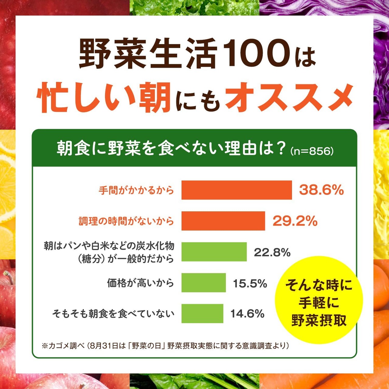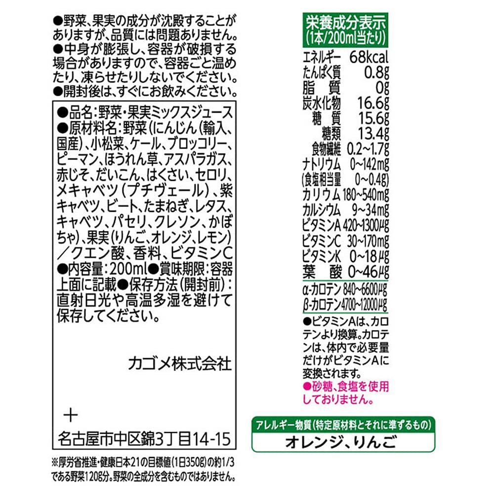 カゴメ 野菜生活100 オリジナル 200ml×30本 フル段ボールは、20種類の野菜と3種類の果実を使用した野菜果実ミックスジュースです。 1食分の野菜を使用し、オレンジやりんごのフルーティーな味わいを楽しみながらビタミンAとビタミンCがた っぷり摂れるので、家族みんながおいしく手軽に野菜を補える野菜飲料です。 原材料・成分 野菜(にんじん(輸入又は国産(5%未満))、小松菜、ケール、ブロッコリー、ピーマン、ほうれん草、アス パラガス、赤じそ、だいこん、はくさい、セロリ、メキャベツ(プチヴェール)、紫キャベツ、ビート、たまね ぎ、レタス、キャベツ、パセリ、クレソン、かぼちゃ)、果実(りんご、オレンジ、レモン)/クエン酸、香料 、ビタミンC