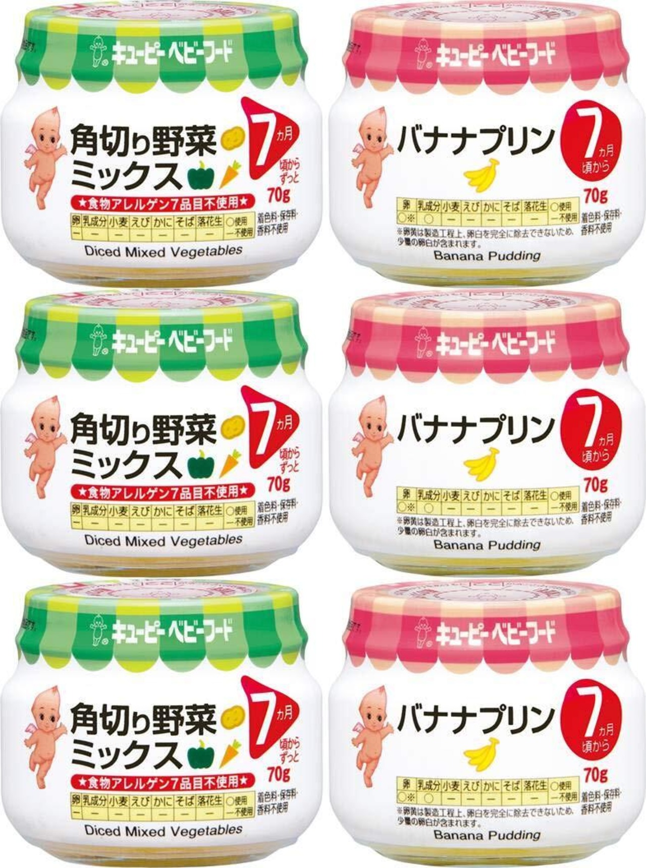 キユーピーベビーフード 瓶詰2種(バナナプリン ・角切り野菜ミックス) ×6個セット 【7ヶ月頃から】