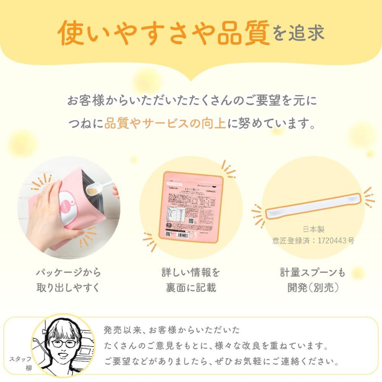 【安心・安全の品質】 bebecoシリーズは、赤ちゃんでも安心して食べられる放射性物質の基準値を満たした「乳児用規格適用食品」。また、製造ロットごとに専門機関で菌検査を実施し、合格したものを出荷しています。さらに、より安心してご利用いただけるよう、衛生管理を徹底した国内の工場で製造しています。