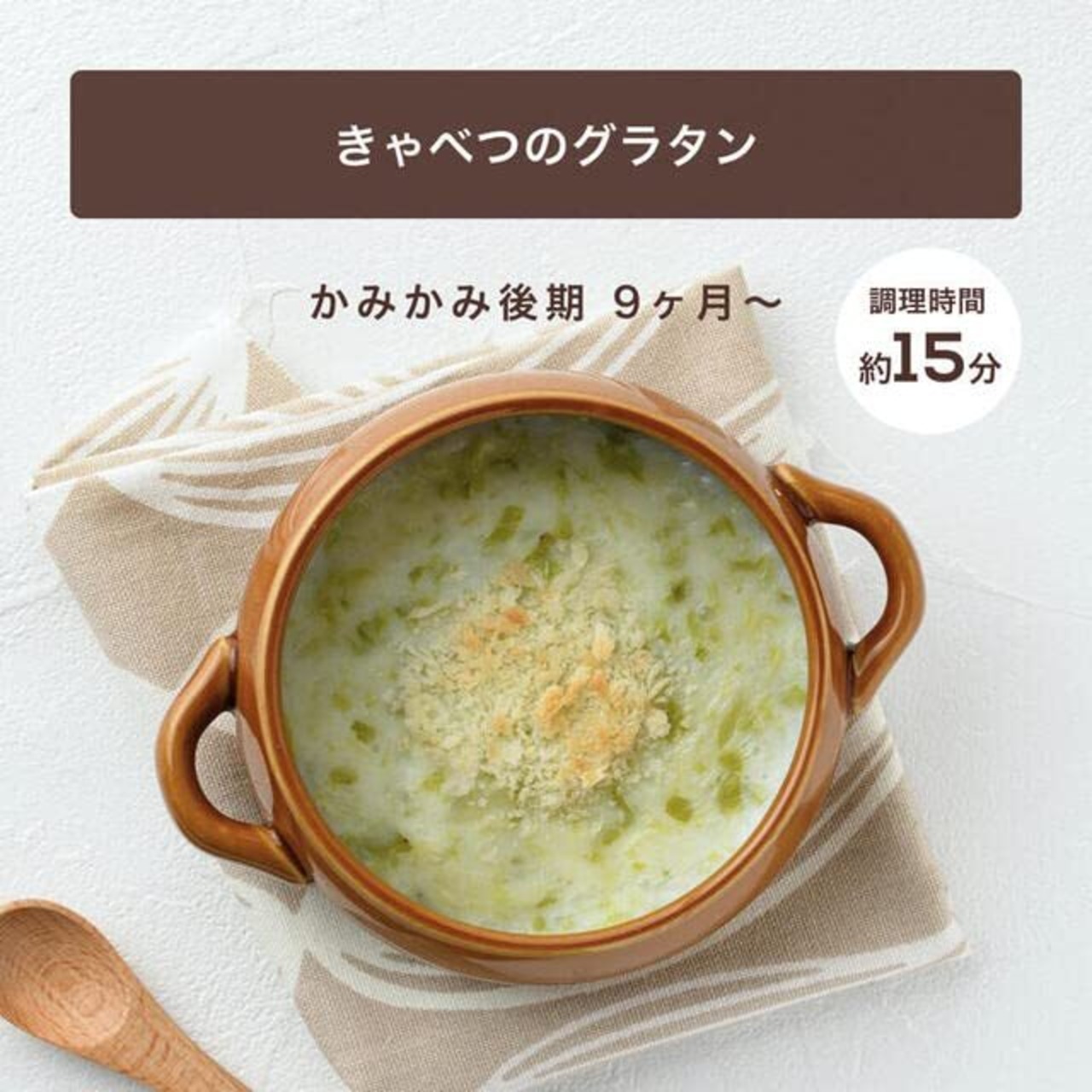 [ 素材本来の味を楽しむ]お子さまの口に入れるものだから、 国産 にこだわり、 素材本来の味を活かしています。また、厳しい安全基準をクリアした乳児用規格適用食品のため、安心してお召し上がり頂けます。
